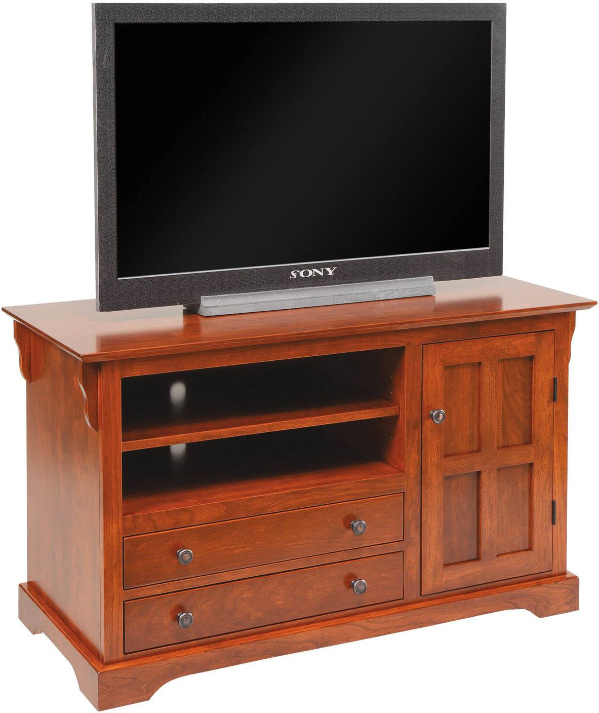 A beautifully paneled door accents the timeless and functional 45 1/2 inch Mission Hills T.V. Stand. This petite entertainment console features expert Amish craftsmanship and attention to detail. The classic design and impressive quality are sure to make this piece take center stage in your living or entertaining area. Offering plenty of storage, this cabinet has space for DVDs, electronics, or even board games! We have several options so you can create the perfect look to fit your needs. This entertainment center is a perfect option for a home of any size or style.