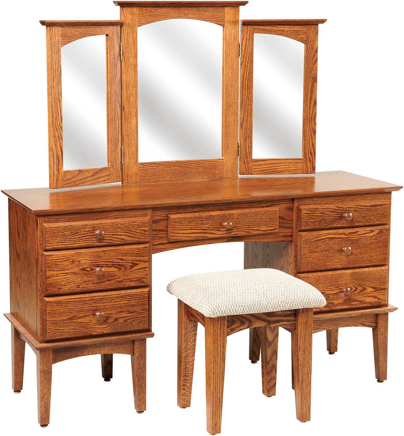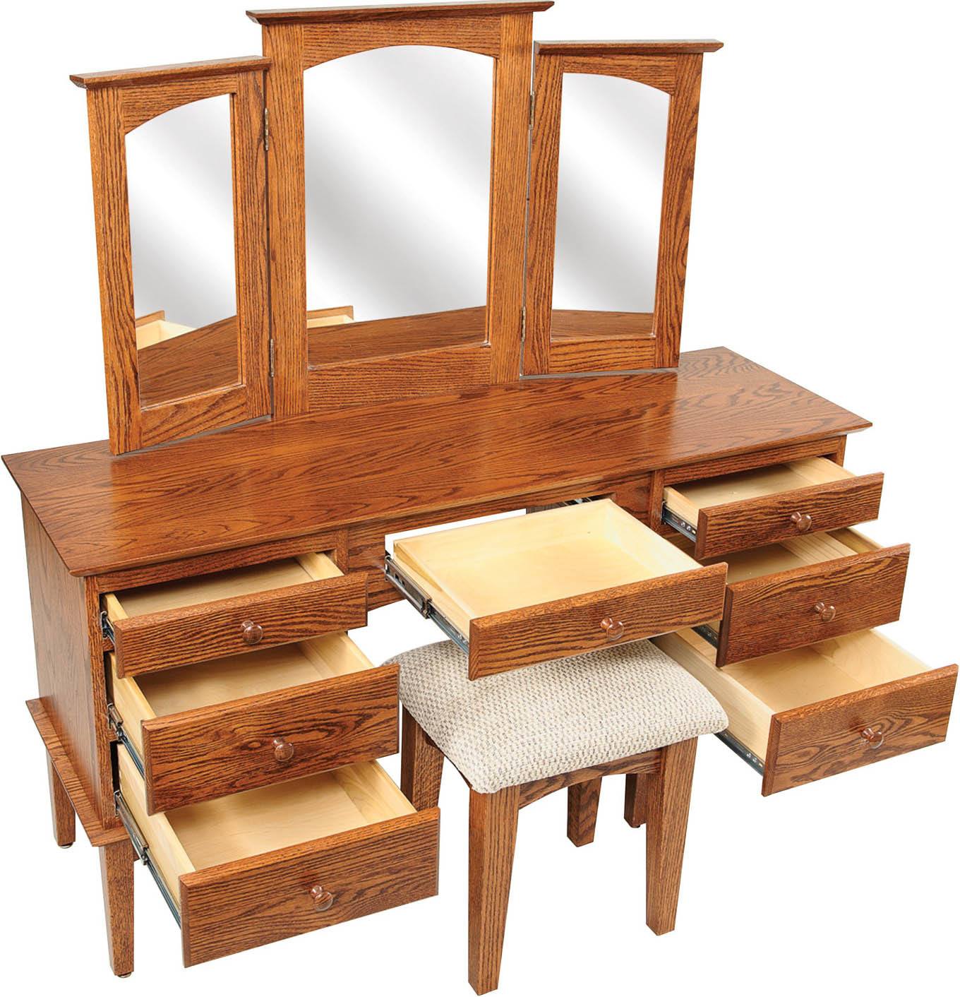 The 56 inch Shaker Dressing Table features a traditional Shaker design and large, tri-fold mirrors. This dressing table provides tremendous storage and the attention to detail you expect in Amish furniture. We offer several customization options so you can create a piece to suit your current home décor. Constructed with solid hardwood, this dressing table is heirloom quality, and you will certainly treasure it for many years to come.