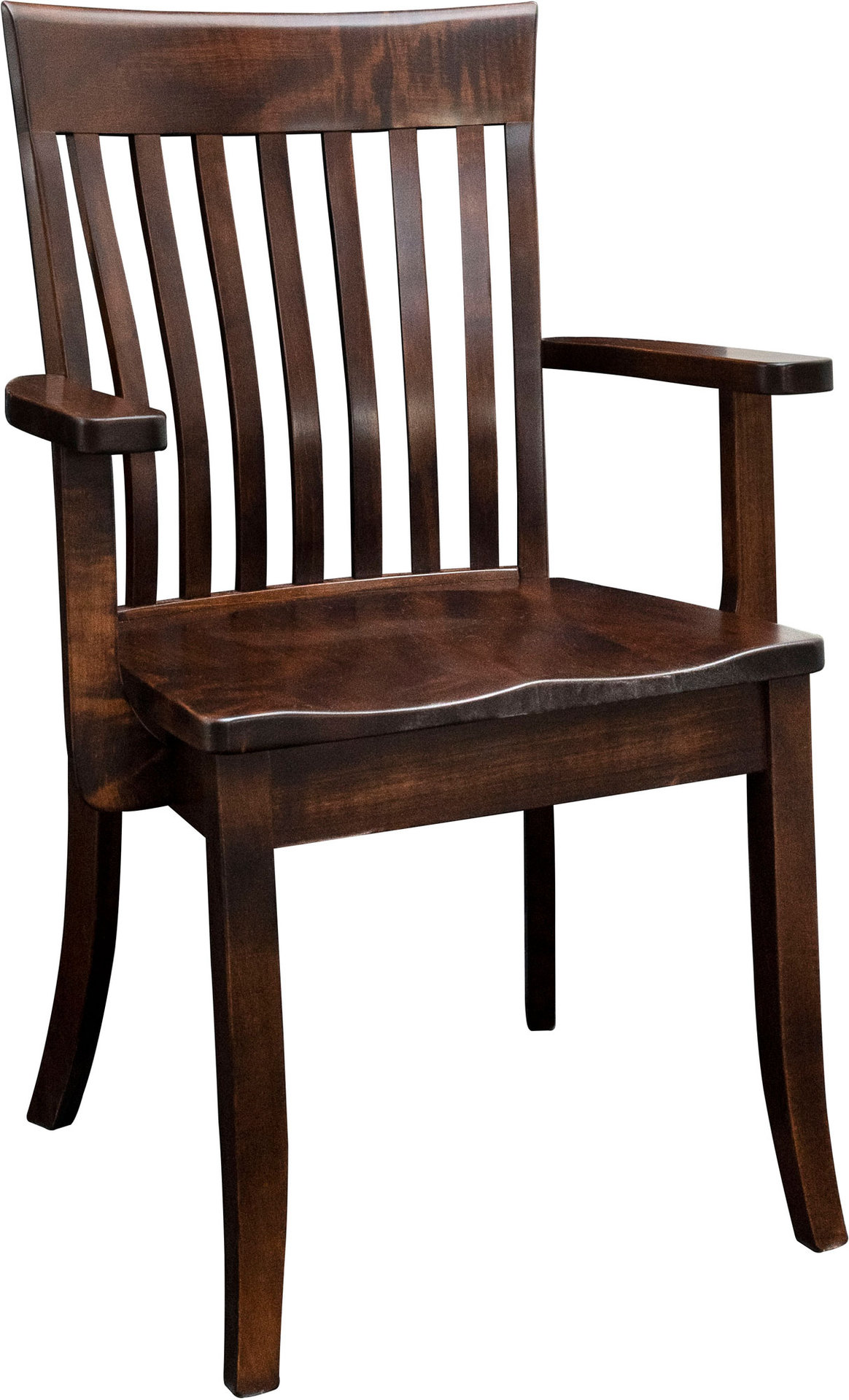Traditional slat design meets legendary Amish cabinetmaking. Welcome to the Aberdeen Chair. What a lovely chair for your dining room! The curved slats catch the eye and provide great back support. While the saddle scoop seat with Mission edge enhances comfort. Want even more comfort? Simply request an upholstered seat, finished in fabric or leather. With both side chairs and armchairs available, you can surround your dining table with any side chair/armchair combination. Our Amish cabinetmakers build the chair. And, they use top hardwoods like oak, maple and sap cherry (shown with Rich Tobacco Stain). No wonder the chair is so great-looking, sturdy and heirloom-quality! Now, make it yours. Simply complete the customizing fields below. Also, make sure you include your choices for wood species, finish and more. Or call 855-768-3270.