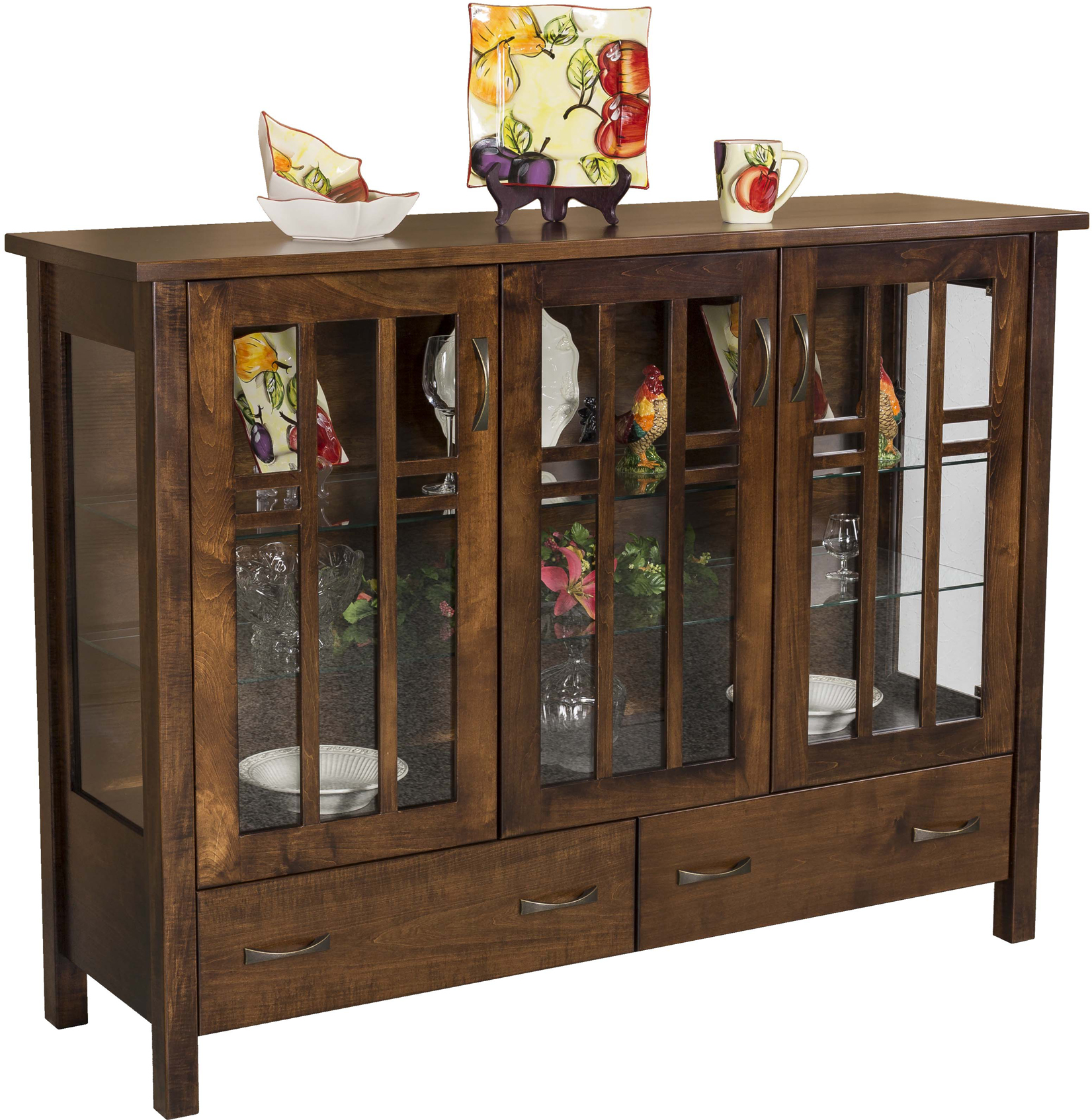 Show off your lovely dishware, glassware and figurines with style. Choose the Acadia Curio. Its mullion glass doors and flat drawer fronts catch the eye. And the two adjustable glass shelves, LED lights and hidden European hinges enhance the upscale look. Beveled glass doors and a mirrored back are optional. The drawers open full-extension for easy access to all the items inside. Also, they close with a gentle push. Our Amish cabinetmakers build the curio with top hardwoods like cherry, oak and brown maple (shown with Asbury Stain). No wonder the piece is so sturdy, it’s heirloom-quality! Now, make it yours. Simply fill out the open (blank) fields below. Also, make sure you tell us your choices for wood species, finish and more. Or call 855-768-3270 today.