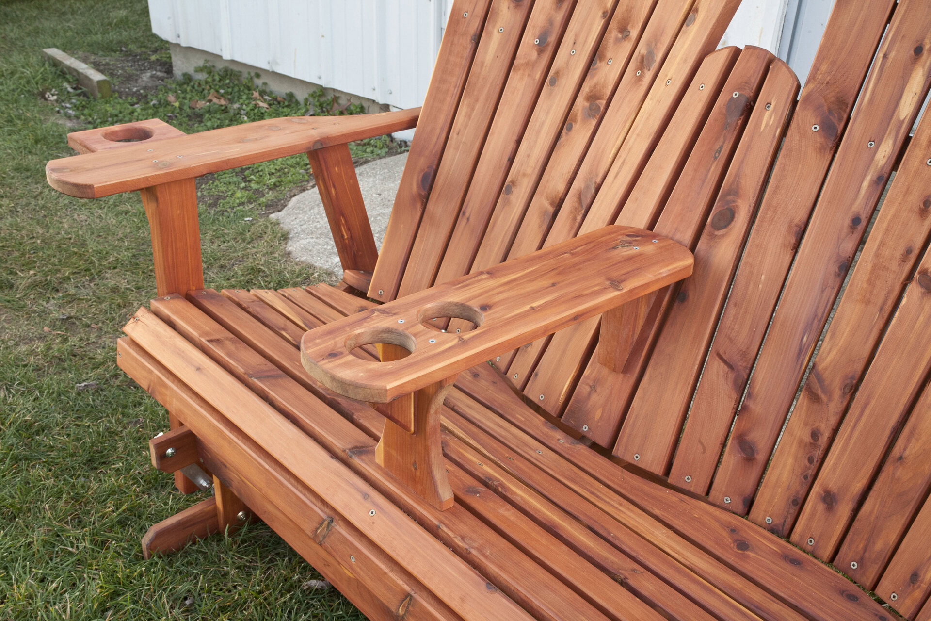 Kick back for a few minutes or wile away the hours the old-fashioned way. Settle into the Adirondack Loveseat Glider. Its sturdy gliders deliver smooth gliding. Also, you can add a screw-on arm cupholder. Or a center cupholder. That way, your beverage is close to hand. Amish craftsmen build the glider. And they do it from aromatic red cedar. So it naturally repels bugs. And rot. What’s more, we use rust-resistant zinc-coated hardware. All for long service life. Ready to order? Click the “Customize this product” button below. Then, fill out the “Customize Product” fields. Also click the “Get your customized quote” button. Or call 855-768-3270 today.