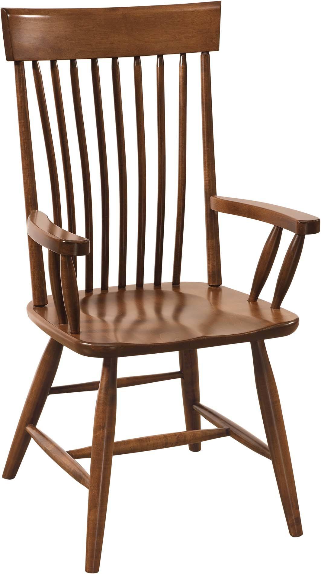 The Albany Dining Chair has a spindle back that will bring a traditional American flair to your dining room. It is available in a side or armchair. Order a set of these Albany Chairs for your dining room table and you will be offering to host the next family dinner at your house. Imagine the memories you will make sitting around the table in these chairs. No need to worry about the kids spilling on them either since you can simply wipe it clean with a damp cloth. These chairs would look great around your kitchen table, too. Additionally, you may want to consider ordering another one as your kitchen desk chair. You see this Albany Chair here in brown maple with nutmeg stain. However, there are four other options of wood species you can choose from.