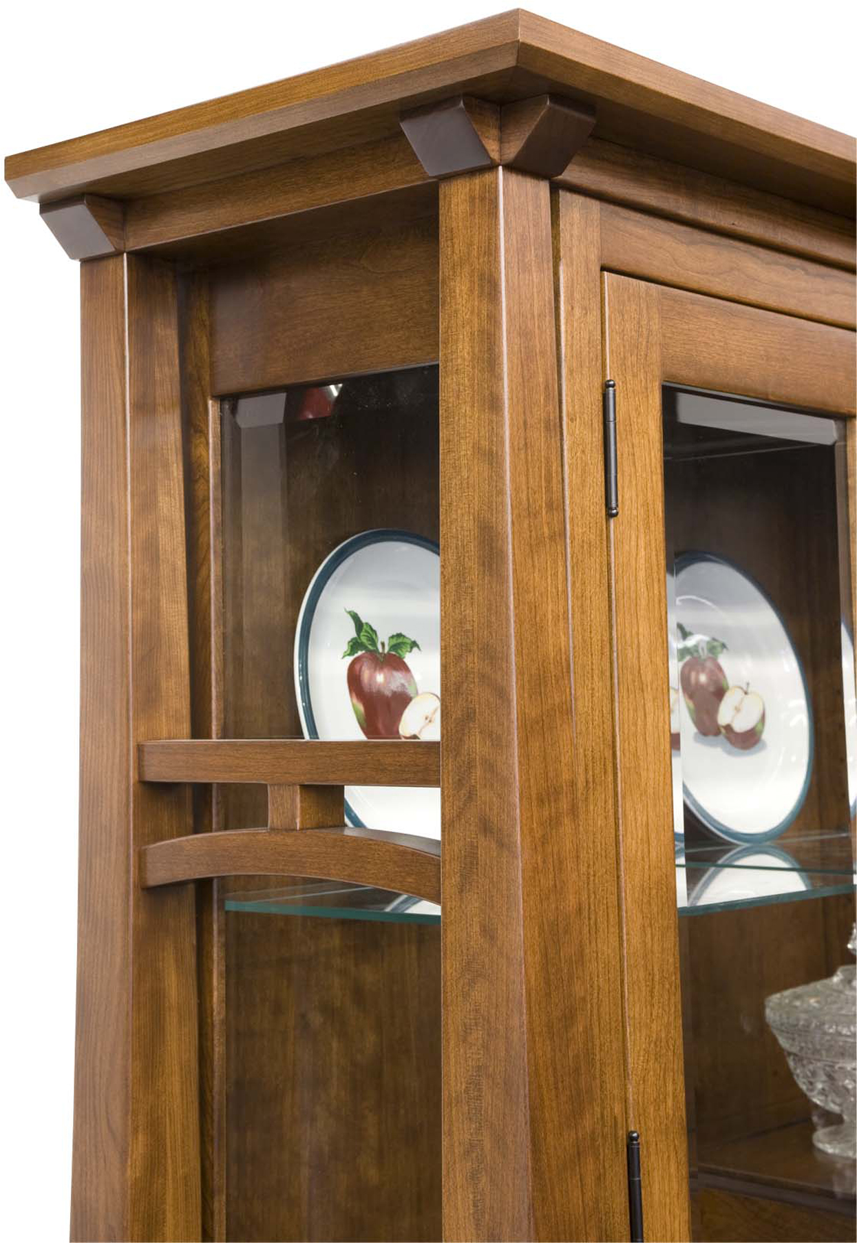 The Artesa Hutch stands out from the crowd with its decorative woodwork in the sides and center. Add the beveled glass sides and doors plus the tapered feet and black pull hardware. And you get a truly impressive piece in which to show off your glassware, dishware and figurines. Also the five adjustable glass shelves come with a plate groove for propping up your favorite plates. While LED lights help create a charming mood. What’s more, the drawer features dovetail joints for durability. Our Amish cabinetmakers build the hutch. Also, they use top hardwoods like maple, oak and cherry (shown). No wonder the hutch is so sturdy, it’s heirloom-quality! Now, make it yours. Simply fill out the open (blank) fields below. Also, make sure you tell us your choices for wood species, finish and more. Or call 855-768-3270 today.