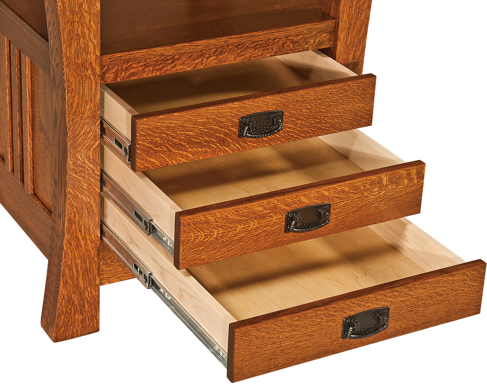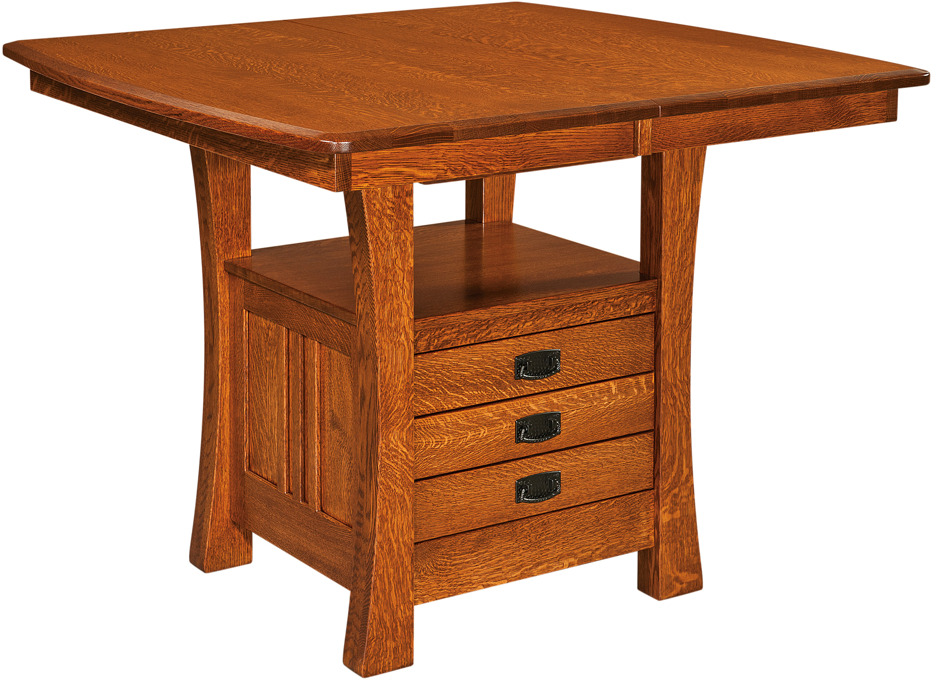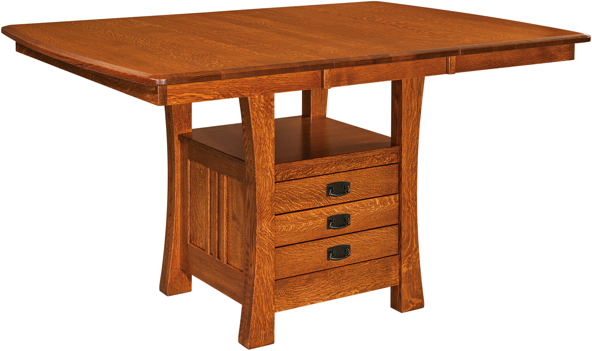 The Arts and Crafts Cabinet Table has storage drawers in its base. This alone sets it apart from most other tables. This unique feature is the perfect place to keep all of your table linens in one easy place, making setting the table a breeze. This Cabinet Table would look great in your kitchen, dining room, and even a pub or game room. You get to choose from one of the three custom table heights. Finally, if you’re looking for a complete set don’t forget to check out our solid wood dining and pub chairs. They will complement your table beautifully. Your guests are certain to comment on the uniqueness and beauty of this handcrafted table.