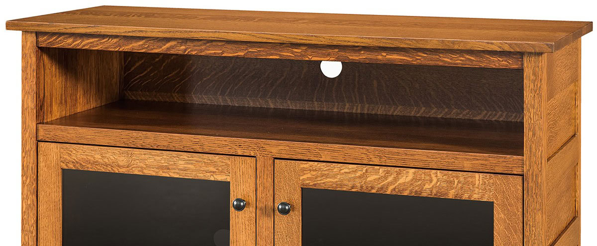 A Mission design and smoked glass doors with available wood mullions highlight the Ashton TV Stand. Also, we place an adjustable solid wood shelf behind each door. So you’ll get lots of space for your entertainment devices. The drawers are built with dovetail joints. And they excel in strength and durability. Amish artisans handcraft each TV stand. Also, they use top regional hardwoods. Like oak, maple, and cherry. So this TV Stand is heirloom-quality! What’s more, you can choose a smaller Ashton console. Or a large or extra-large TV stand. Now, make it yours. Simply complete the customizing fields below. With your choices for wood species, finish, and more. Or call 855-768-3270.