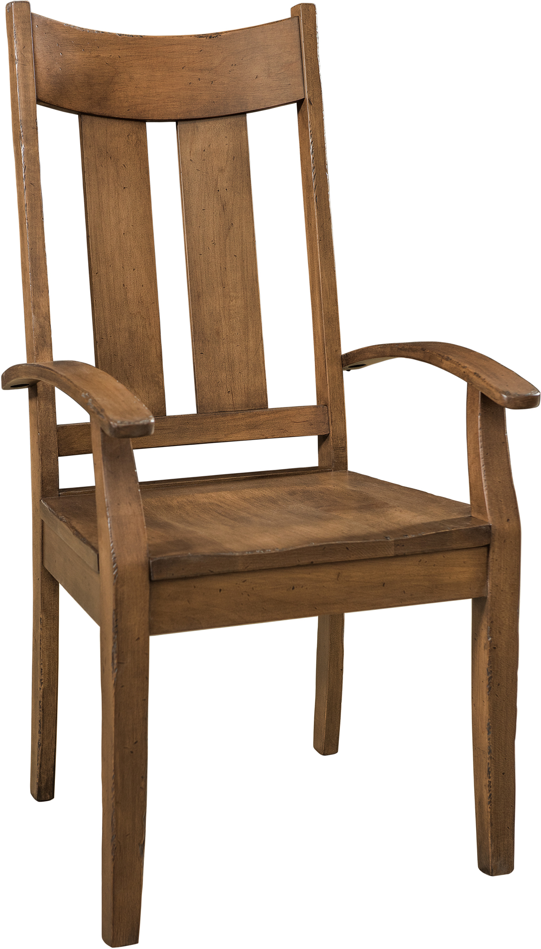 The Aspen Chair features delicately curving arms and clean wide shaker slats on the back to create a unique dining chair. It has a sturdy base and will be constructed from your choice of hardwood. You may choose your stain color and choose from either an arm or side chair to meet your needs.