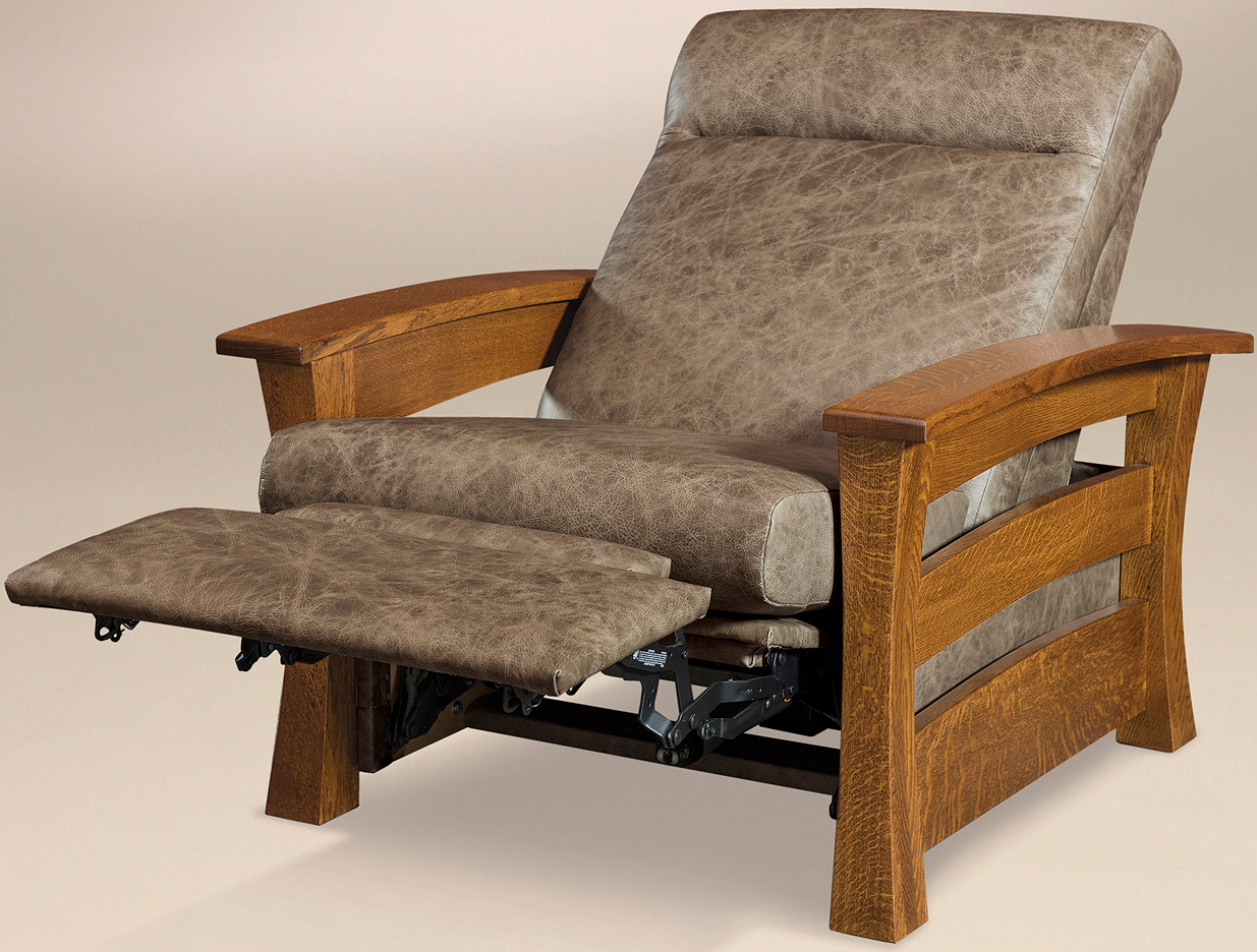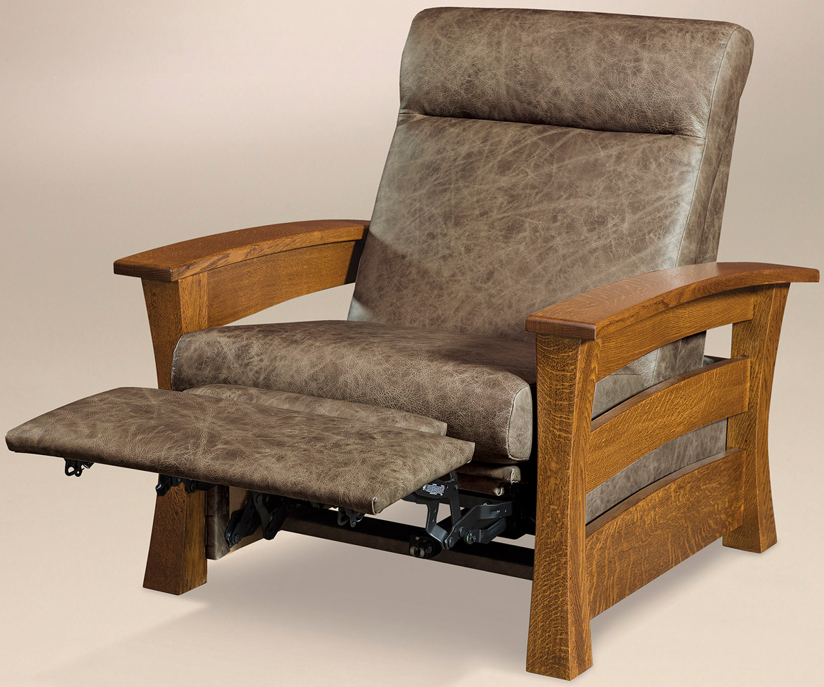Skilled craftsmen designed the Barrington Chair Recliner with wide slat sides and bowed arms. Therefore creating a unique chair for your Family Room. Constructed from the finest hardwoods, this sturdy chair features a wall-hugger mechanism. Meaning you can place this chair up to 4 inches from the wall and still be able to fully recline with ease. With custom options available, you can create the perfect chair for your home. One that matches your personal style and meets your every need.
