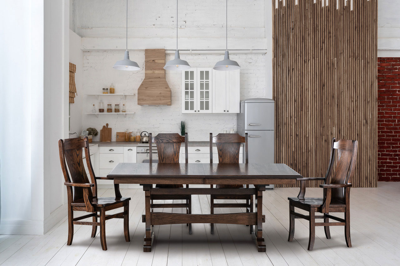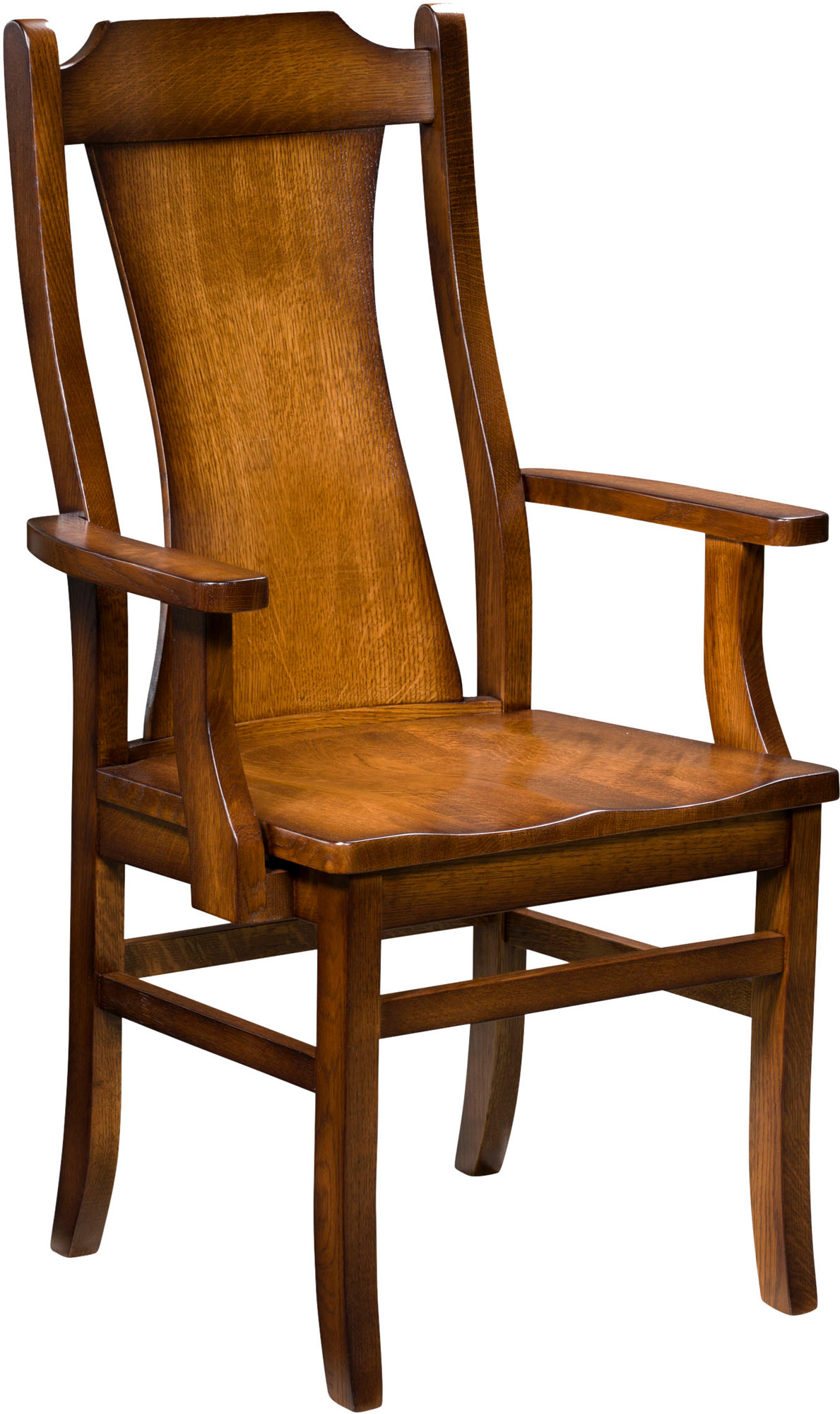 Presenting a classic chair, complete with wide backrest, graceful curves and Hoosier Special Burnished Stain. Welcome to the Barrington Chair. This chair is perfect for any upscale dining room. The wide slat plus the saddle scoop seat with Mission edge provide lumber support and comfortable seating respectively. Also, you can order the chair as a side chair and/or an armchair. Our Amish cabinetmakers build the chair. And, they use top hardwoods like quarter-sawn white oak (shown). No wonder the chair is so sturdy and heirloom-quality! Now, make it yours. Simply complete the customizing fields below. Also, make sure you include your choices for wood species, finish and more. Or call 855-768-3270.