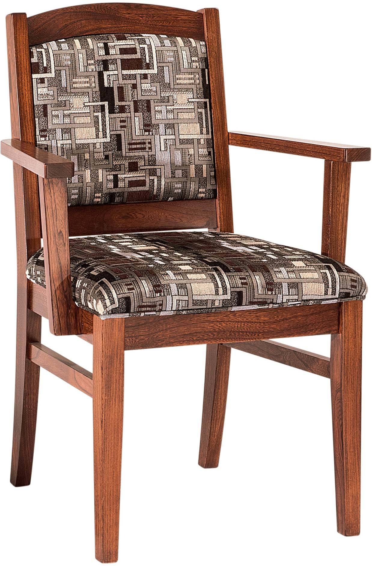 The Bayfield Dining Chair will bring style and function to any dining room. Choose two arm chairs for the heads of the household. Then, pair it with the right number of side chairs for your family and guests. Opt for a beautiful fabric print or classic leather that complements your home décor. Consider purchasing a coordinating dining table and/or hutch at the same time so they can be finished with the same dye lot as the chairs. Thus, ensuring the color ages together over time. You see this Bayfield Dining Chair here in gray elm with new Carrington stain and 26-2 terry fabric. However, feel free to customize it to your needs. For instance, select your favorite wood species, finish and seat material.