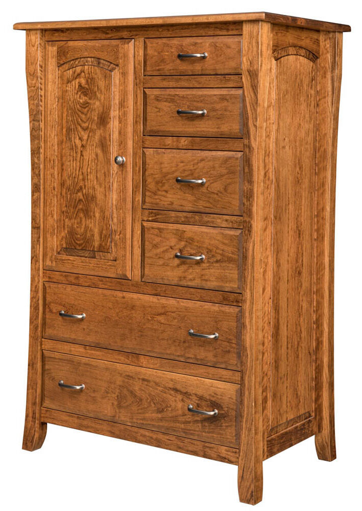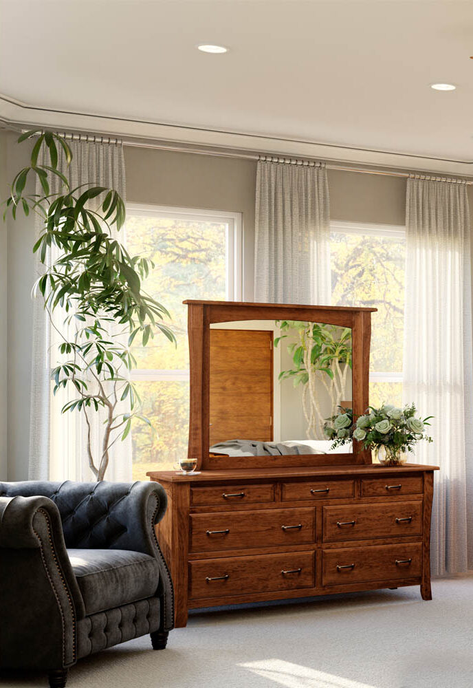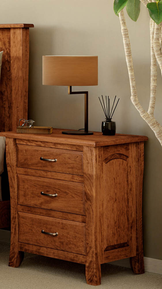 Elegant raised panels and black pull hardware combine with solid wood Amish cabinetmaking. That’s the Berkley Bedroom Set. It’s a superb choice for your bedroom. The drawers open full-extension. So, you’ll enjoy easy access to everything inside. While the dovetail drawer joints enhance strength. Our Amish artisans build the set. And they use top hardwoods, such as cherry, maple and oak (shown). Now, make it yours. Simply complete the customizing fields below. Also, make sure you include your choices for wood species, finish, and more. Or call 855-768-3270.