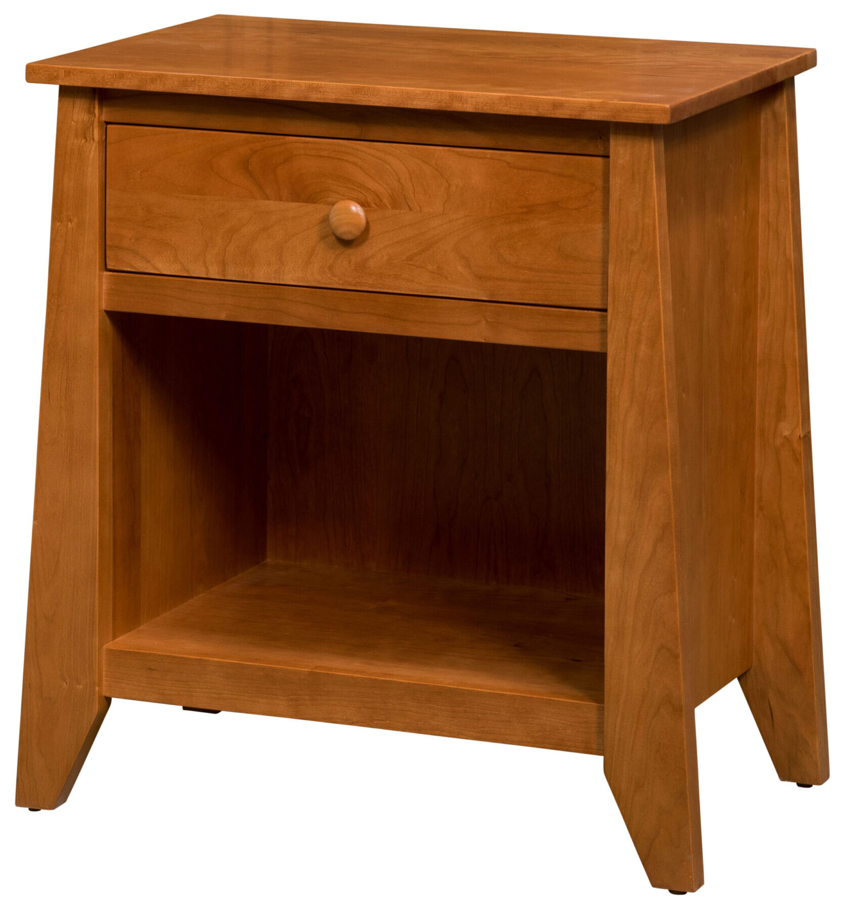 With its open design and eye appeal, the Berwick Open Nightstand is as practical as it is great-looking. In fact, the flush drawer, round wooden knob hardware and flared feet reflect its Shaker style. While the dovetail drawer joint testifies to the strength of the piece. Our Amish artisans build the nightstand. And they use hardwoods like cherry, maple and oak. So, the unit is heirloom-quality! Now, make it yours. Simply complete the fields below. Also, make sure you tell us your choices for wood specie, finish and more. Or call 855-768-3270.