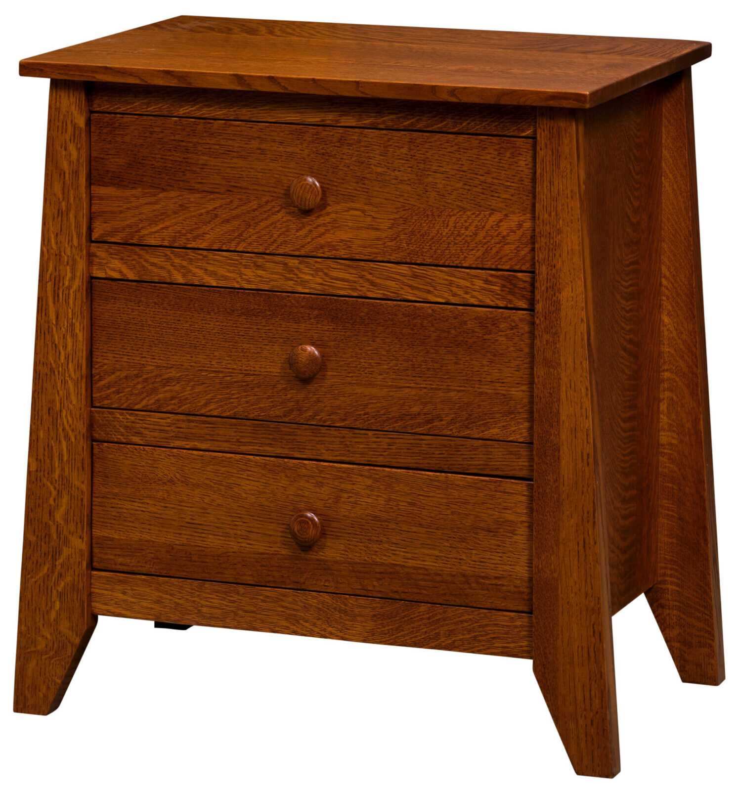 Shaker-style elegance meets Amish solid hardwood construction in the Berwick Three Drawer Nightstand. Notice the round wooden knob hardware, flush drawers and flared feet. The tapered profile enhances the eye appeal. Our Amish artisans build the nightstand. And they use woods like cherry, maple and oak. Also, they place sturdy dovetail joints in the drawers. So, the unit is heirloom-quality! Now, make it yours. Simply complete the fields below. Also, make sure you tell us your choices for wood specie, finish and more. Or call 855-768-3270.