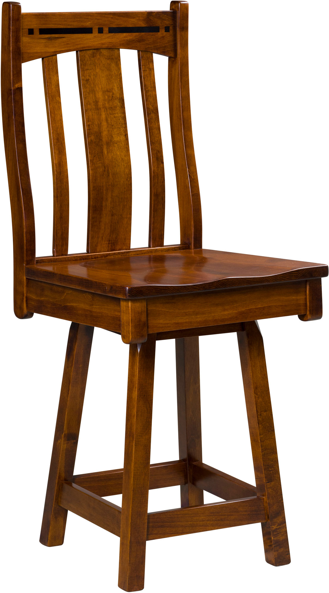 A bar stool featuring graceful curves and arches plus ebony inlays and Amish cabinetry. It’s the Boulder Creek Bar Stool. Imagine this eye-catching piece at your breakfast counter, island kitchen, or in-home bar! The curved backrest and scoop seat enhance comfort. Also, you can choose the stool in swivel or stationary designs. Our Amish cabinetmakers built the bar stool. And they use top hardwoods like maple, cherry, and quarter-sawn white oak (shown with Michael’s Cherry Stain). No wonder the piece is heirloom quality! Now, make it yours. Simply fill out the customizing fields below. Also, make sure you tell us your choices for wood species, finish, and more. Or call 855-768-3270 today.