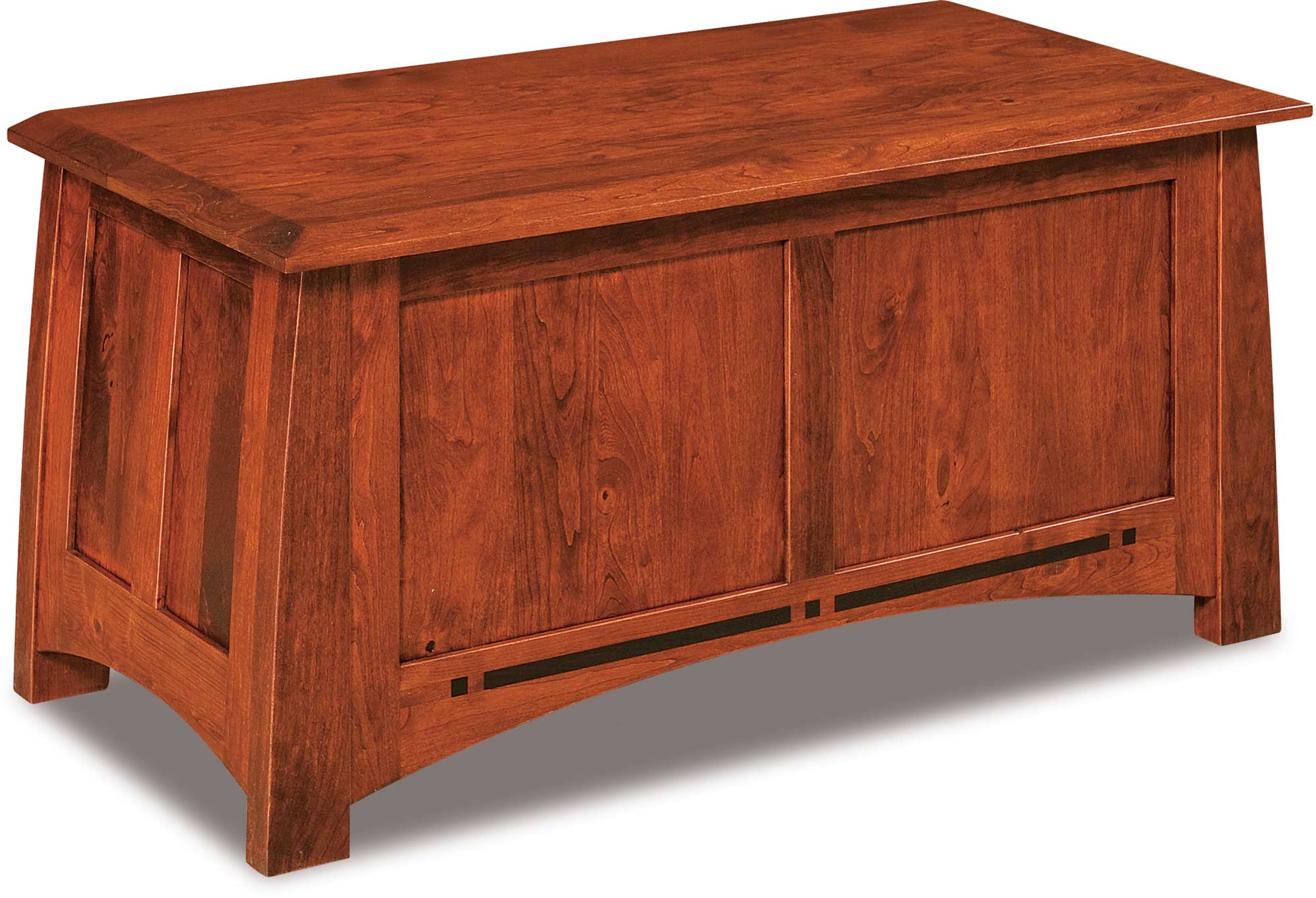 The Boulder Creek Blanket Chest — with its curved panel sides, ebony inlays and softly bowed lines – will make a beautiful, and practical, addition to your master bedroom. We made the chest large enough to store your nice bedding items. Like blankets, bedspreads and duvet covers. Plus sheets, pillowcases and comforters.