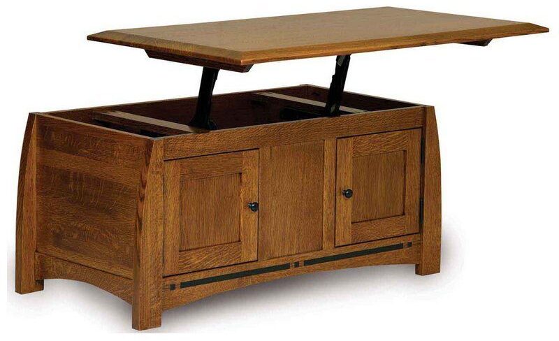 The Boulder Creek Enclosed Coffee Table is like a coffee table and dining table/work and play station rolled into one. We offer it with a lift-top option! So, raise the 1-inch-thick, solid wood top. Then, pull it toward you. And you’ll get to enjoy a snack or work on the computer. Or you can read a book or play a game. All from the comfort of your sofa. Then, lower the top, and the impressive Boulder Creek features come clearer into view.