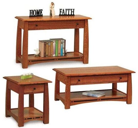 Skilled Amish cabinetmakers painstakingly handcraft each Boulder Creek Sofa Table. And they use solid hardwoods like hickory, oak, and maple. The sofa table is so sturdy, you can count on it being in service for decades to come.