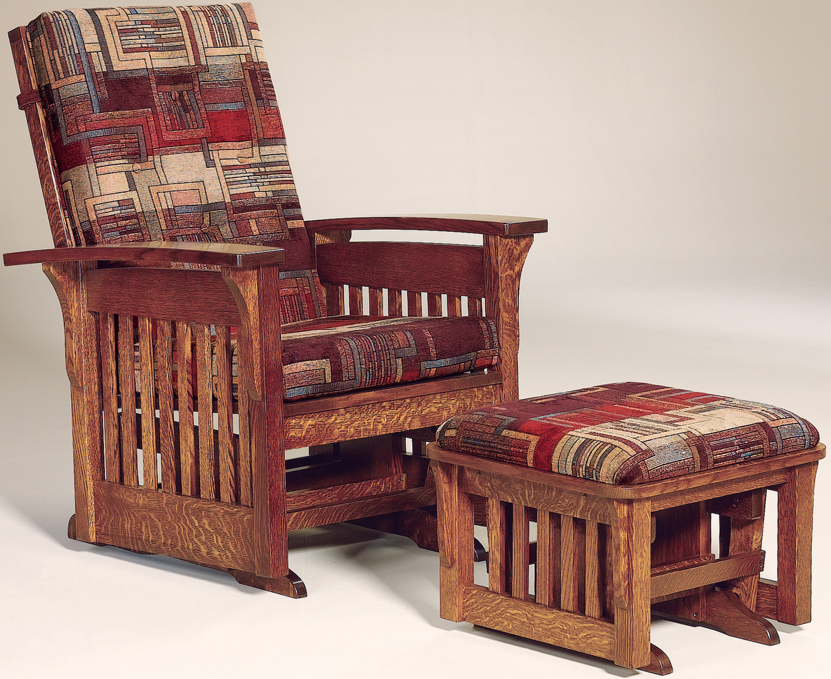 Amish craftsmen designed the Bow Arm Slat Glider with Ottoman with a classic Mission Style. Therefore create a unique glider with ottoman for your home. One that will be perfect for relaxing in your Living Room or rocking your baby to sleep in the Nursery. Constructed from the finest hardwoods, this sturdy glider will withstand hours of rocking for years to come. With custom options available you can create the perfect glider with ottoman for your home.