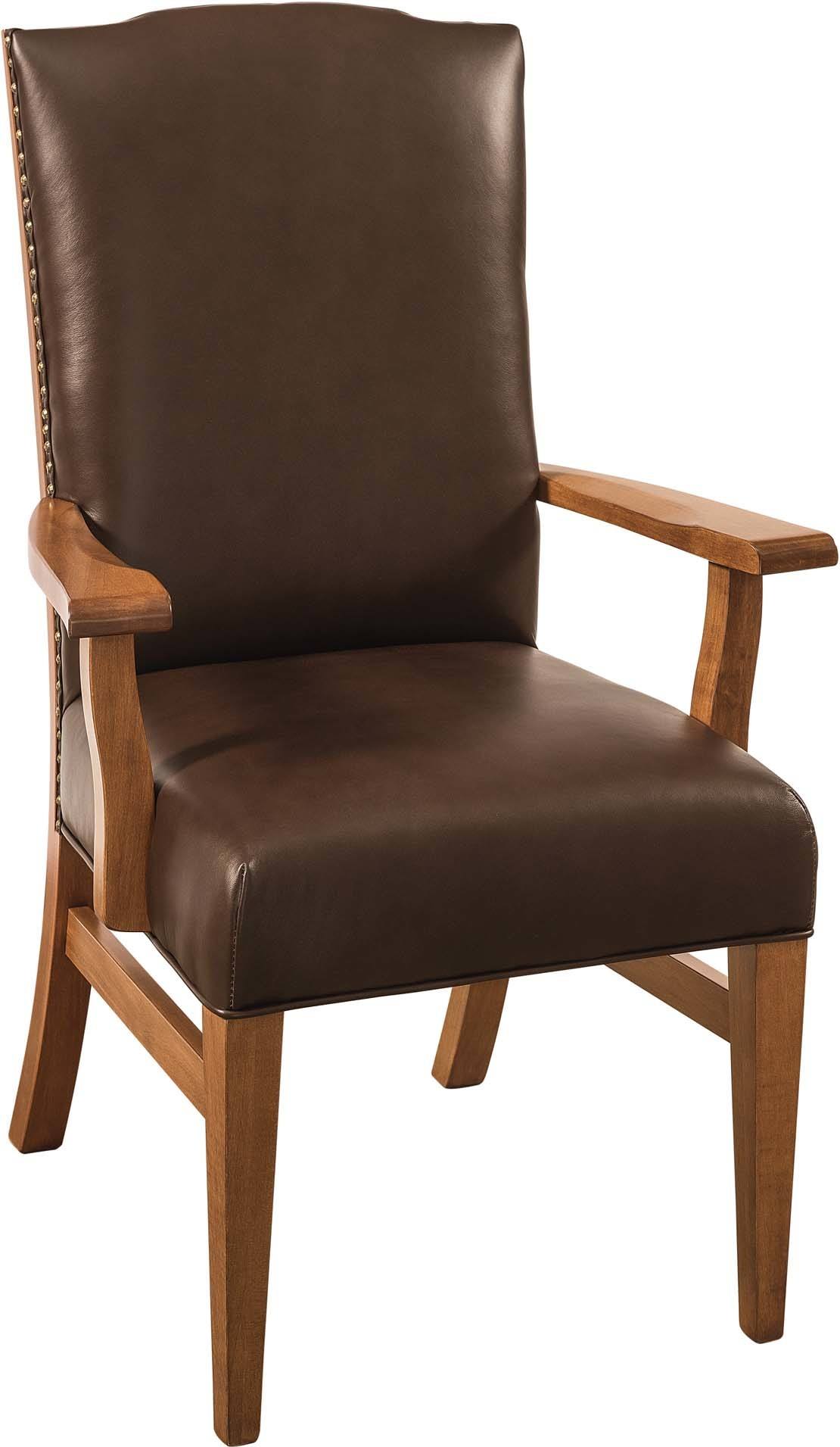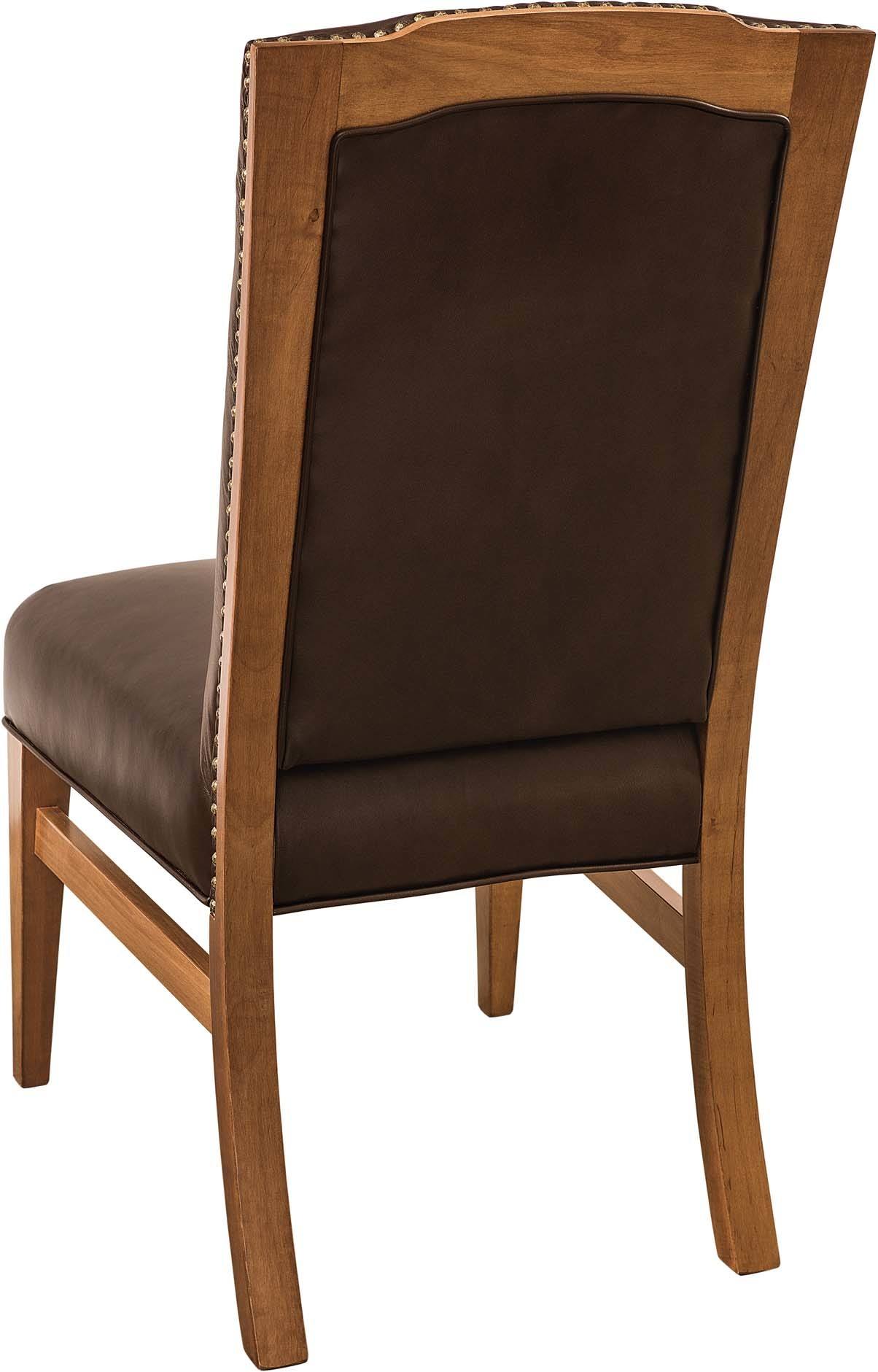 The Bow River Dining Chair is a classy choice to pair with your dining room table. Its leather or fabric back and seat with decorative tack detail will add style and color to your room. Pair it with one of our solid wood dining tables such as the Georgetown Table. Then, you will have a set you are proud to entertain your family and friends at. Because our Amish craftsmen handcraft each dining chair out of solid wood we are able to fully customize this Bow River Dining Chair to meet your needs. First, opt for side or arm chair and one of six tack options. Next, choose your favorite wood species, finish and leather or fabric back and seats. Then, you will be well on your way to making this chair part of your dining room space.
