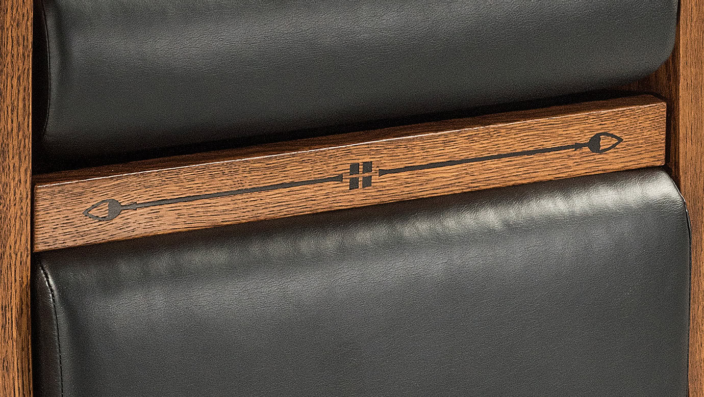 With its eye-catching design and impeccable craftsmanship, the Brady Recliner is sure to grab attention in your living room or family room. Check out its Ravenwing black ultra leather cushions. Also note the flared feet and arch design on each side. Then, we carve a black tupelo inlay below the seat. What’s more, the back is artistically finished in solid hardwood. So the recliner looks great from all directions.