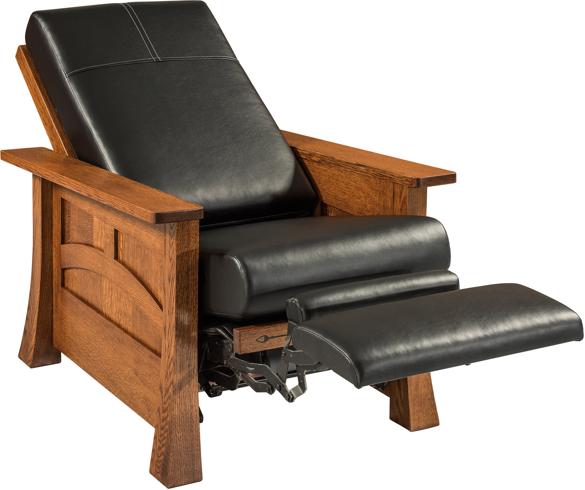 Our Amish upholsterers build the 6-inch-thick seat and back cushions around a Marshall full coil, individually wrapped spring unit. So it’s incredibly comfortable. Ready to kick back? Relax in the pillow-soft seat. Then, gently push back. The Leggett and Platt reclining mechanism takes over. Gently gliding to your desired position. While the comfortable footrest cradles your feet.