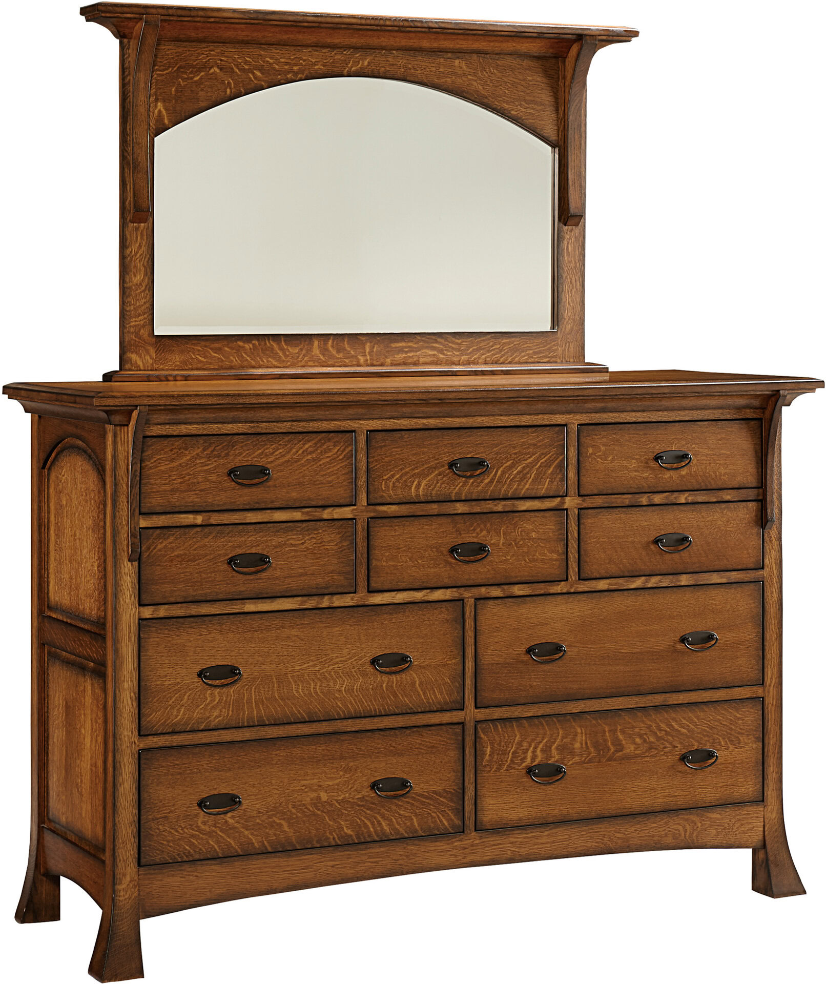 Elegantly flared posts and crown moldings are just a few of the stylish accents of the Breckenridge Dresser. The Breckenridge Dresser features ten full extension drawers with soft-close option and a one inch thick wood top. Check out the matching Breckenridge Dresser Mirror. Both pieces can be customized in your choice of hardwood and stain color. There are plenty of matching and coordinating pieces for the Breckenridge Dresser. Visit us in Northern Indiana to see more custom wood bedroom pieces. In order to receive a quote, choose the options that best meet your needs and a furniture specialist will contact you, usually within 24 hours. Or if you just have a question not answered by our website, send us a quote request or contact us via phone.