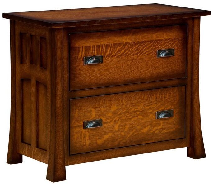 The Bridgefort Mission Lateral File Cabinet is a great piece of storage furniture for any office.Shown in Quartersawn White Oak with Burnished Michaels Finish.