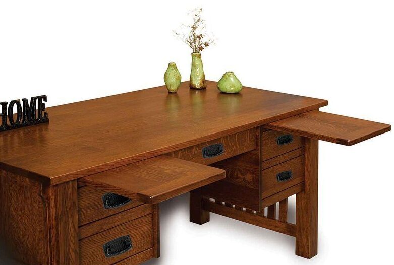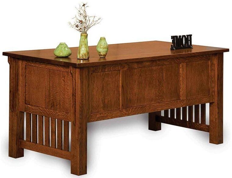 With its arched corbels, decorative slats and mission drawer pulls, the Bridger Mission Desk will give your home office a chic persona. Its eye-catching looks notwithstanding, this desk is all business. Amish craftsmen painstakingly handcraft each desk. And they use solid Midwestern hardwoods like oak, maple and cherry. The Amish men build the unit so sturdy, it should last for generations to come.