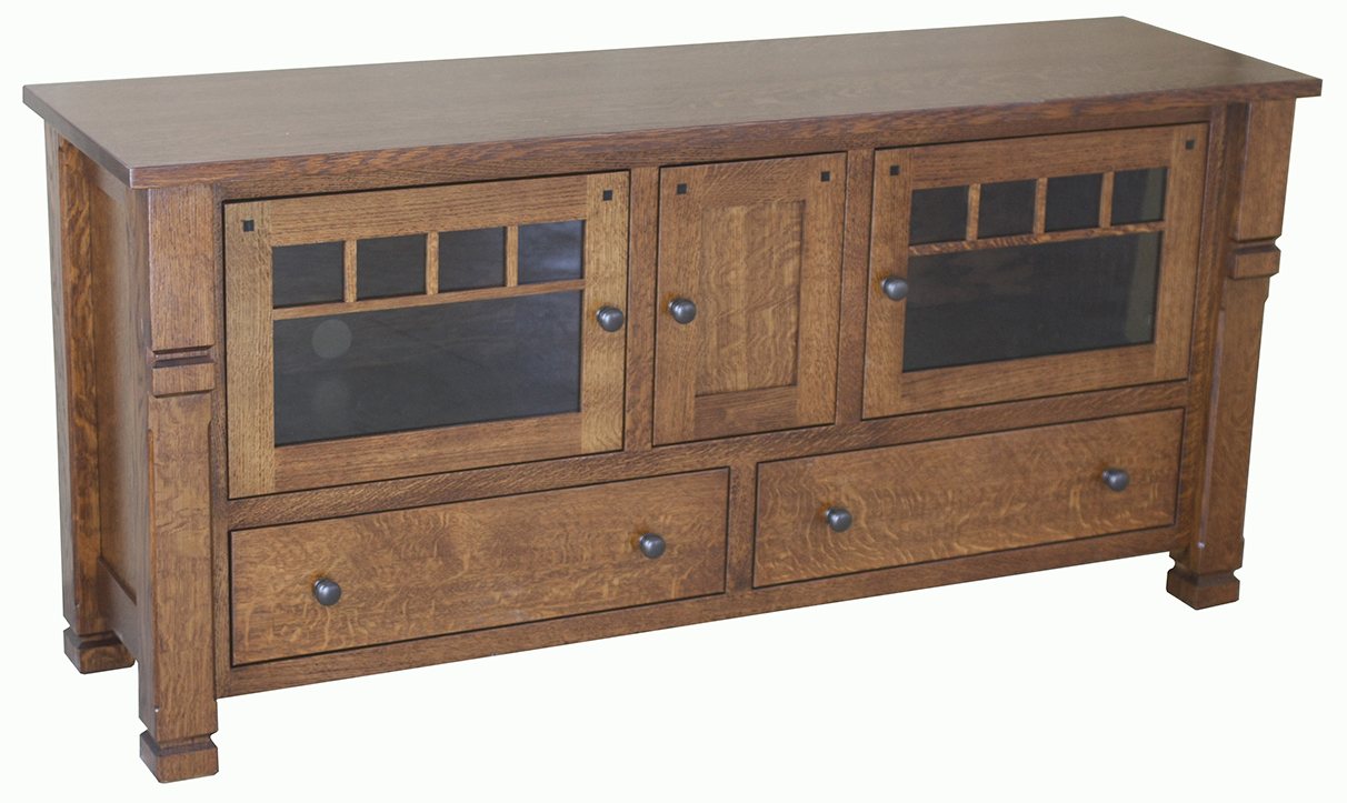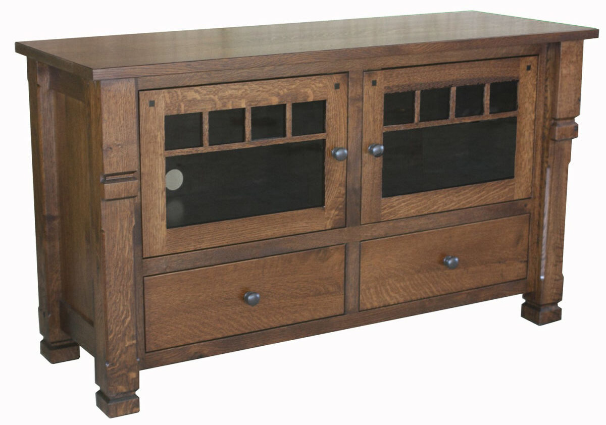 Ornately carved posts flank flush doors with mullions and ebony inlays. The Brockport TV Stand is your best choice if you’re looking for a TV cabinet with over-the-top style and elegance. We place an adjustable shelf behind each door. Giving you flexibility in arranging your electronic devices. Also, the flush drawer opens full-extension. This means easy access to your music and video collections. While the dovetail drawer joints excel in durability. You can choose between four sizes. So, you’re sure to get the size that meets your needs and desires. Our Amish cabinetmakers build the unit. They use top hardwoods, like oak, maple and cherry. No wonder the TV cabinet is so sturdy and heirloom-quality. Now, make it uniquely yours. Simply complete the customizing fields below. Also, make sure you include your choices for wood species, finish, and more. Or call 855-768-3270.