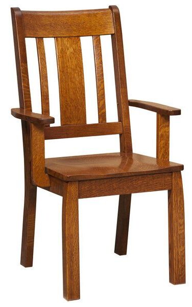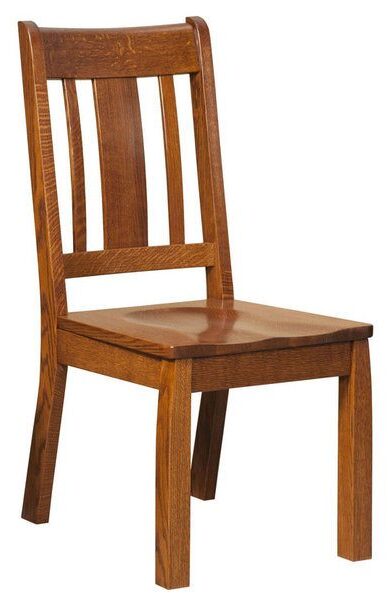 A simple, stately and attractive style that should complement your dining table. That’s the Brookville Amish Dining Chair. The backrest and scoop seat provide comfort. Looking for even more comfort? Simply request fabric or leather seats. And we have numerous fabrics and leather finishes to choose from. Also, we offer the unit as a side chair and armchair. Your choice. Our Amish cabinetmakers build the chair. And, they use top hardwoods like oak, maple and cherry. No wonder the chair is so great-looking and heirloom-quality! Now, make it yours. Simply complete the customizing fields below. Also, make sure you include your choices for wood species, finish and more. Or call 855-768-3270.