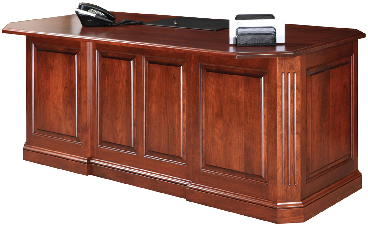The Buckingham Series Executive Desk embodies the beauty of natural hardwood with raised panels and fluted corners. The corners are reminiscent of the architectural techniques of the Ancient Greeks as they utilized columns in their structures. The fluting detail mimics the appearance of a tree trunk but boasts finishing indicative of its elegance. If you find yourself in a role at work or at home that demands confidence and organization, this is the desk for you. This desk can stand by itself in the middle of a room and command anyone’s attention. Make sure you take time to browse our selection of office furniture, especially the Buckingham Series, to complete a cohesive office set.