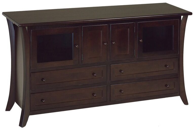 With unique curved lines and chic style, the Caledonia 72 Inch TV Cabinet Stack is contemporary style at its finest. The Amish collection features round over edge on 1-inch-thick tops with dovetailed maple drawers. In addition, the TV Cabinet is handcrafted from solid hardwood. The four drawers feature premium soft close under mount slides with shaker wood knobs. This tv cabinet features drawers inside the solid wood cabinets to organize. As well as, hold and organize your Blue Ray and CD collection. In addition, the Amish TV Cabinet has lightly smoked glass for easy remote usage with an adjustable shelf to organize your media equipment. Finally, this tv cabinet can be customized to fit your style. You have the option to select from a variety of wood, stain, hardware, and glass to make it your own.