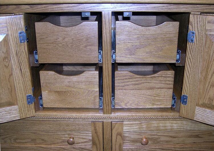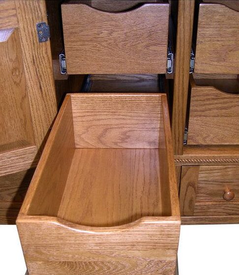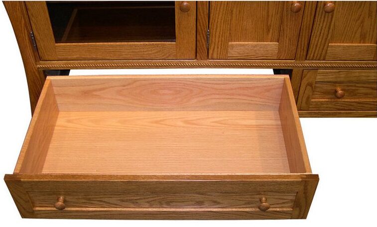 With unique curved lines and chic style, Caledonia Oak 72 Inch Plasma TV Cabinet is a traditional style at its finest. The 72 Inch TV Cabinet sits at 21 1/2 inch in height. Therefore, allowing for a comfortable height in watching your favorite programs or movies. The Amish TV Cabinet features round over edges with 1-inch-thick tops and two dovetailed maple drawers. In addition, the TV cabinet is handcrafted from solid hardwood. The drawers feature premium soft close under mount slides with shaker wood knobs. In addition, this tv cabinet has solid wood doors and lightly smoked glass for easy remote usage with an adjustable shelf. Above all this tv cabinet can be customized to fit your style. Finally, can choose from a variety of wood, stain, glass, and hardware to make it your own.