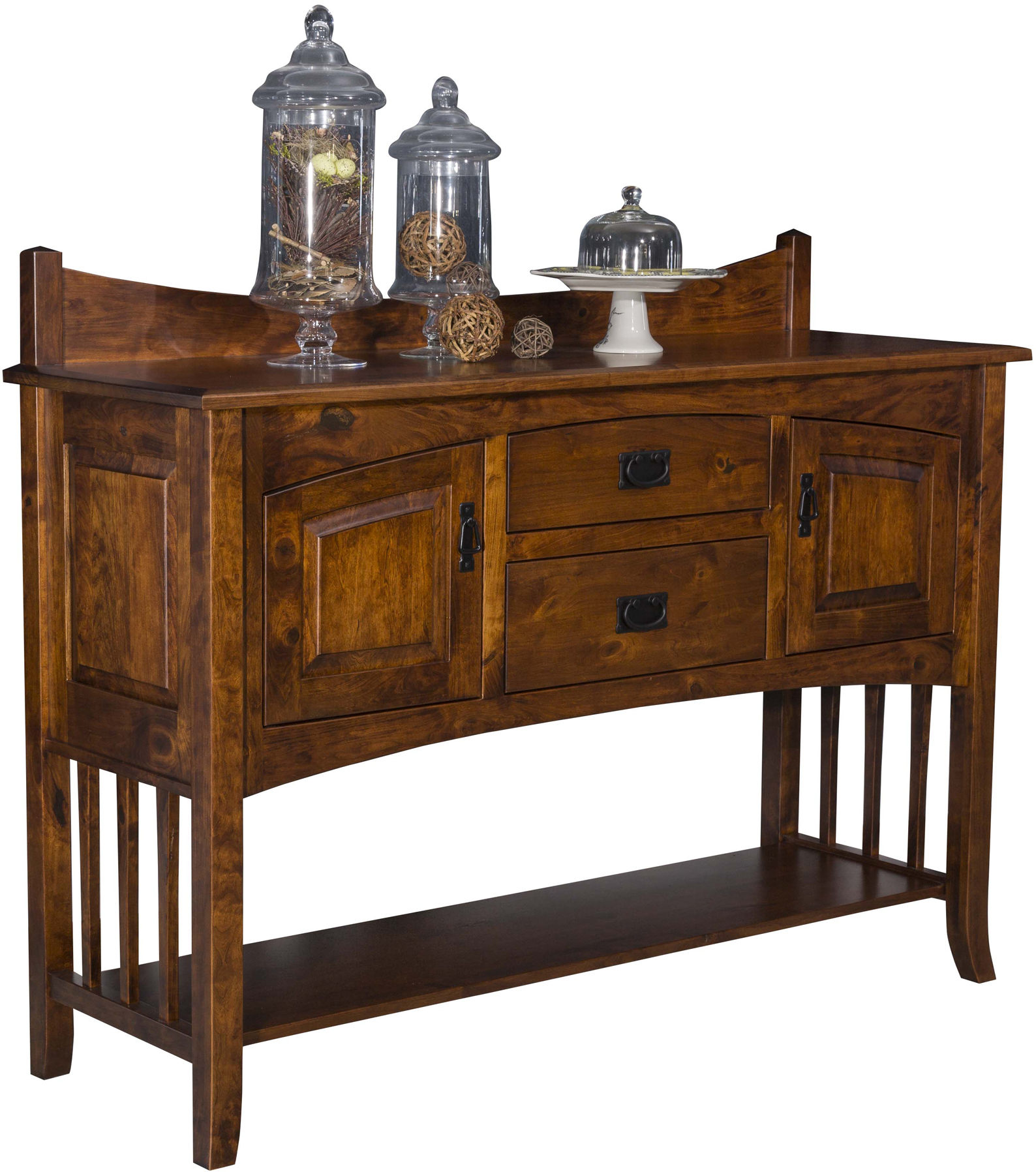 With its graceful arches and flared feet, the Cambria Open Sideboard has a sophisticated look. While its flush doors and drawers, raised panels, slats and black pull hardware add a Mission-style touch. Add the large countertop with backsplash, copious storage and bottom shelf. And you get a practical companion piece to your dining table. The drawers open full-extension for easy access to all the items inside. And they close with a gentle push. Our Amish cabinetmakers build the buffet from top hardwoods like oak, maple and cherry. No wonder the piece is so sturdy, it’s heirloom-quality. Now, make it yours. Simply fill out the customizing fields below. Also, make sure you include your choices for wood species, finish and more. Or call 855-768-3270.