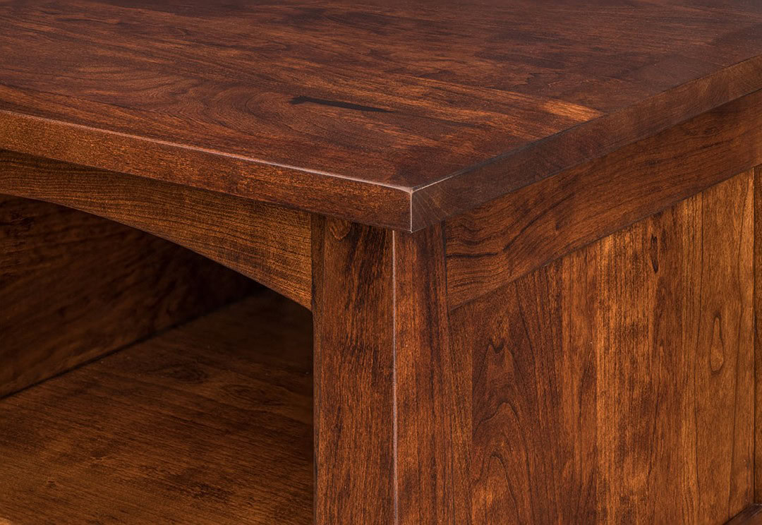 The Cambridge Bedroom Set is a stunning set that will have you spending more time in your bedroom than any other room in the house. The set includes the bed, gentleman’s chest, 9-drawer Mule Dresser, and 3-drawer nightstand. Each piece has reverse raised panel sides and tapered legs with a larger square footprint at the bottom that adds style and stability to this set. If you are lacking storage space in your closet this Bedroom Set is the answer to your dreams. With its 18 dovetailed drawers with full extension slides, you will have plenty of room for all of your clothes. This set is shown in quarter-sawn white oak with Michael’s cherry finish but can be customized to your choice of wood species and finish.