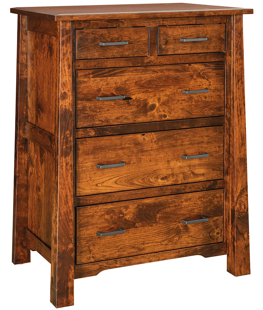 Tapered legs. Flush-front drawers. Also rustic cherry Amish construction. The Cambridge Five-Drawer Chest is irresistible. Yet, it’s practical, too. Because the drawers open full-extension. So you’ll get easy access. Also, the dovetail drawer joints are strong. Amish artisans build each chest. Also, they use top hardwoods. Like maple. Cherry. And oak. The result? Heirloom-quality! So, make it yours. The Cambridge Chest of Drawers. Simply complete the fields below. With your choices for wood specie. Finish. Also hardware. Or call 855-768-3270.