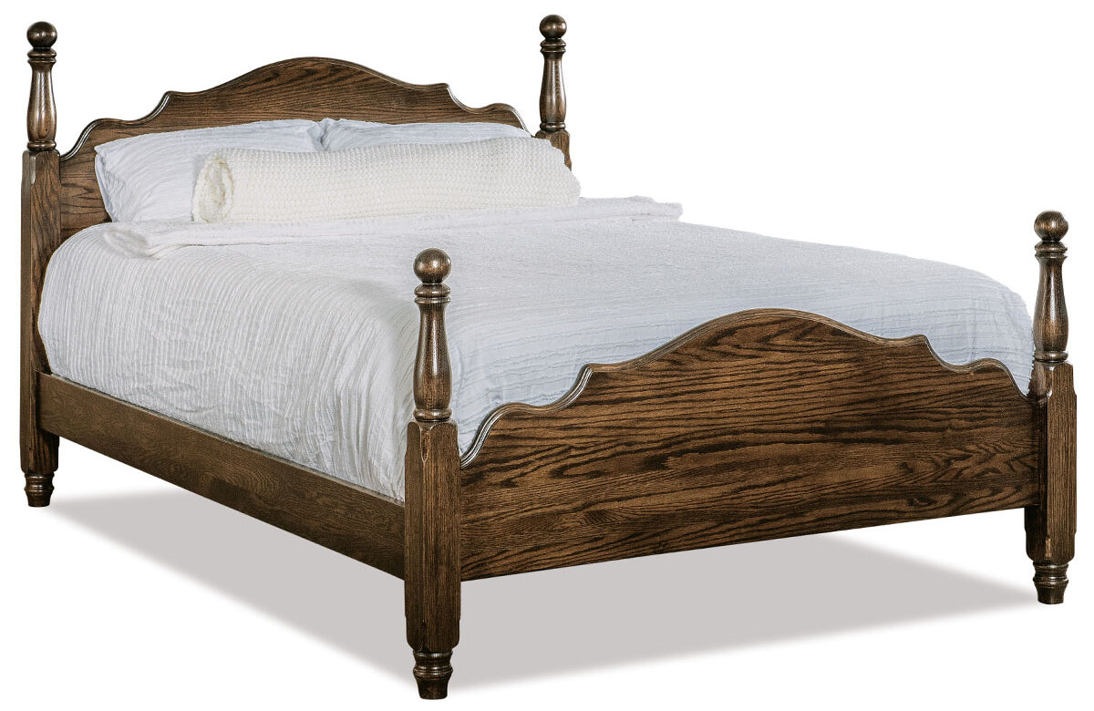 The Cannon Ball Bed takes it name from the turned posts, each topped with a round ‘cannon ball.’ Add the carved headboard and footboard. And you get a superb-looking bed. What a great choice for your traditional bedroom! We offer the bed in queen (shown), king, California king, full and twin sizes. Your choice! Our Amish cabinetmakers build the bed. And they use top hardwoods like oak, cherry and brown maple (shown with CF-93803 stain). No wonder the bed is so sturdy and heirloom-quality! Now, make it yours. Simply complete the customizing fields below. Also, make sure you include your choices for wood species, finish and more. Or call 855-768-3270.