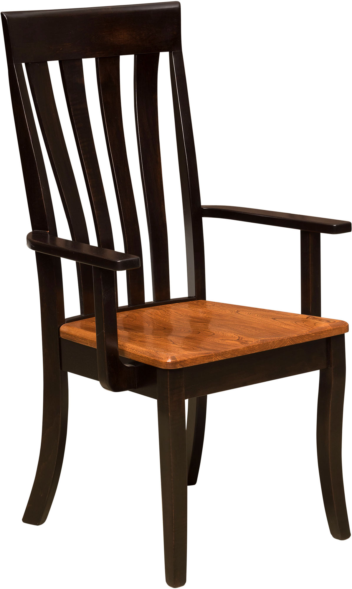 Comfort and fine dining start with the Canterbury Chair. Indeed, the curved slats and legs catch the eye. As does the two-tone finish. The saddle scoop seat enhances comfort. And for even greater comfort, you may request an upholstered seat finished in fabric or leather. Also, you can order your chairs with your favorite combination of side chairs and armchairs. Our Amish cabinetmakers build the chair. And, they use top hardwoods like oak, cherry and brown maple (shown with Onyx Stain and a natural finish). No wonder the chair is so great-looking, sturdy and heirloom-quality! Now, make it yours. Simply complete the customizing fields below. Also, make sure you include your choices for wood species, finish and more. Or call 855-768-3270.