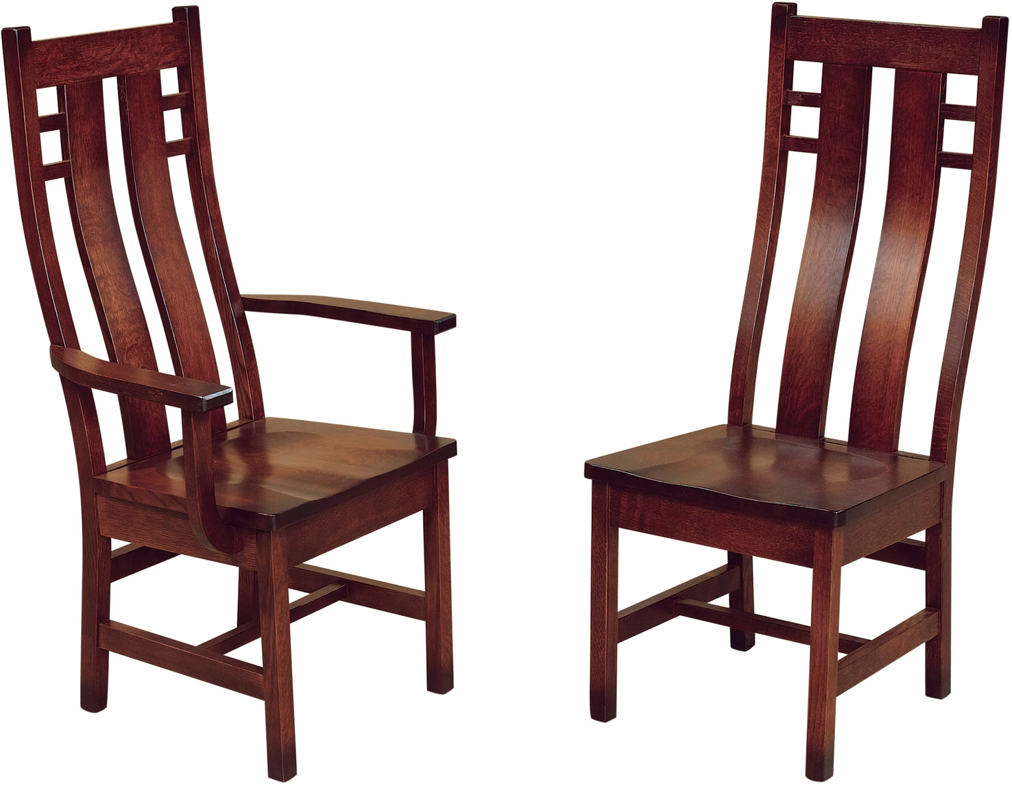 The modern style of the Cascade Chair includes a rich wood finish. The cross slat design on the tall elegant curved back brings a modern flair. These details create a stylish choice for your kitchen or dining room. Amish craftsman uses the finest hardwood to match your dining room style. Then the hardwood will be stained in your selection of colors.
