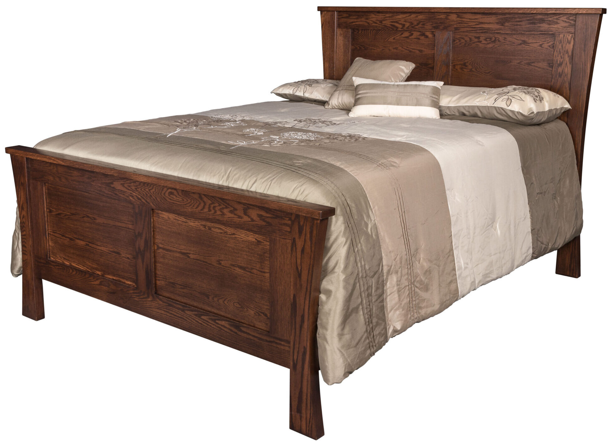 Curved sides, flared feet and elegant raised panels create a pleasing, artistic design on the Catalina Panel Bed. What a great-looking piece for your well-appointed bedroom! You can order the bed in king, queen or full sizes. So you can get the bed in the size that meets your needs and desires. Our Amish cabinetmakers handcraft the bed. Also, they use top hardwoods. Like cherry, maple, oak and hickory. No wonder the bed is so sturdy. Durable. Plus heirloom-quality! Now, make it yours. Simply complete the customizing fields below. Also, make sure you include your choices for wood specie, finish and more. Or call 855-768-3270.