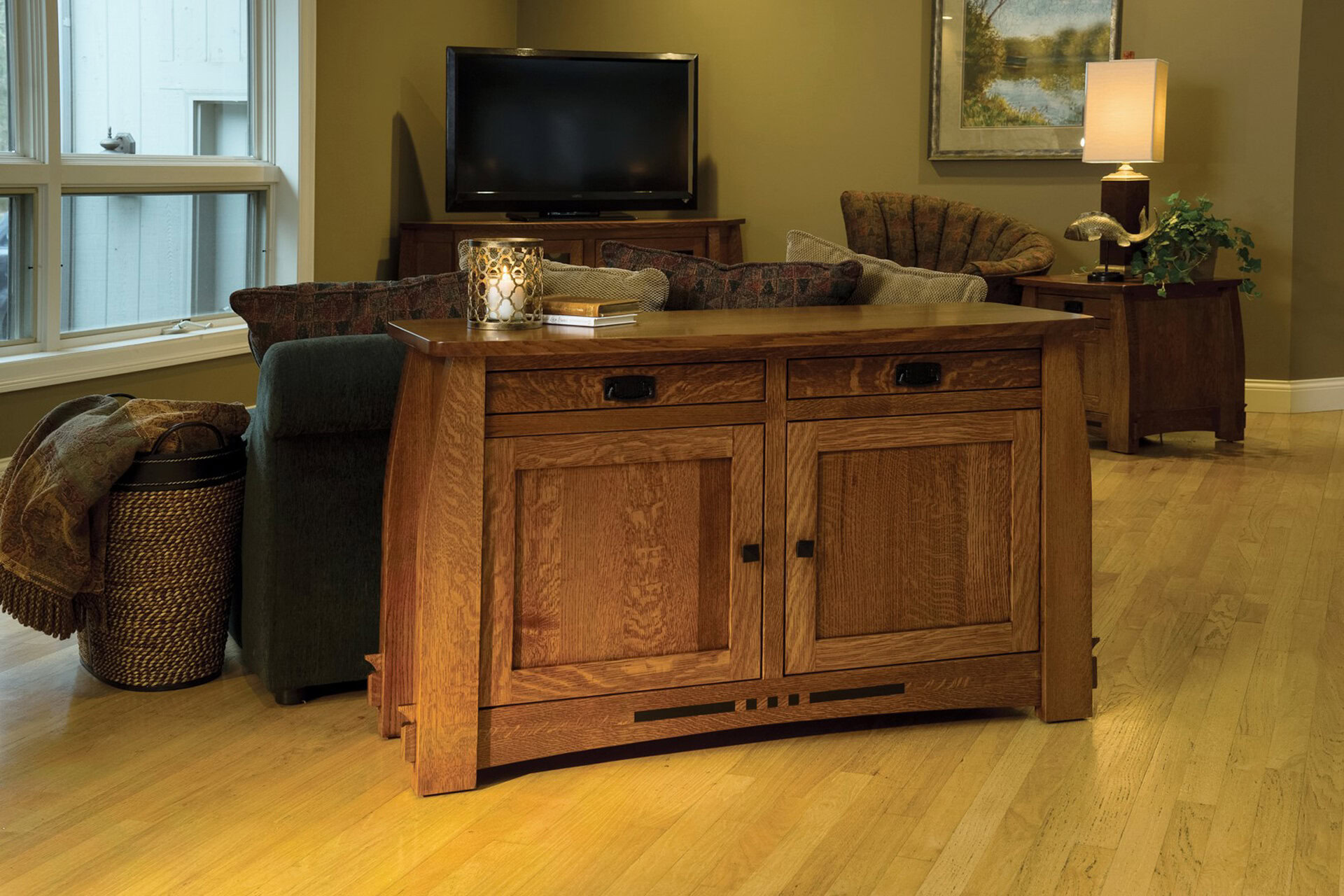 With its elegant design and copious storage space, the Colebrook Living Room Set excels in looks, convenience and durability. Its curved profile and ebony inlays catch the eye. As do the exposed tenon accents and black rustic hardware. Comfort features abound. Like the optional lift-top on the coffee table. Also, the dovetail drawers open full-extension. So you’ll enjoy easy access to everything inside. While the doors close with a gentle push. The set includes a corner TV cabinet and coffee table. Plus an end table and sofa table. Amish artisans build each Colebrook Living Room Set. Also, they use top hardwoods. Like oak, cherry and maple. No wonder the set is so incredibly sturdy. Beautiful. And heirloom-quality! Ready to order? Click the “Customize this product” button below. Then, complete the “Customize Product” fields. Also click the “Get your customized quote” button. Or call 855-768-3270.
