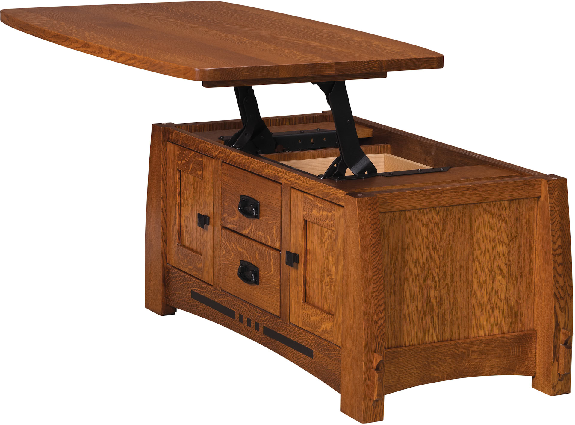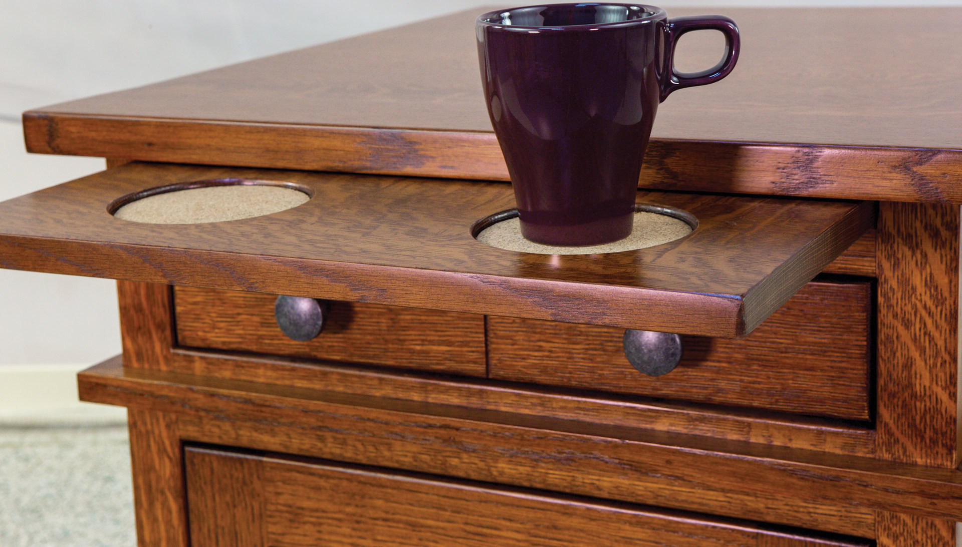 The Colebrook Occasional Table Set is a perfect choice for your living room or den! A bowed top and mortise and tenon accents stand out on this set. These tables also feature ebony inlay, so these tables certainly exude a special character. With lift-top and drink pullout options, these tables cannot be beat!