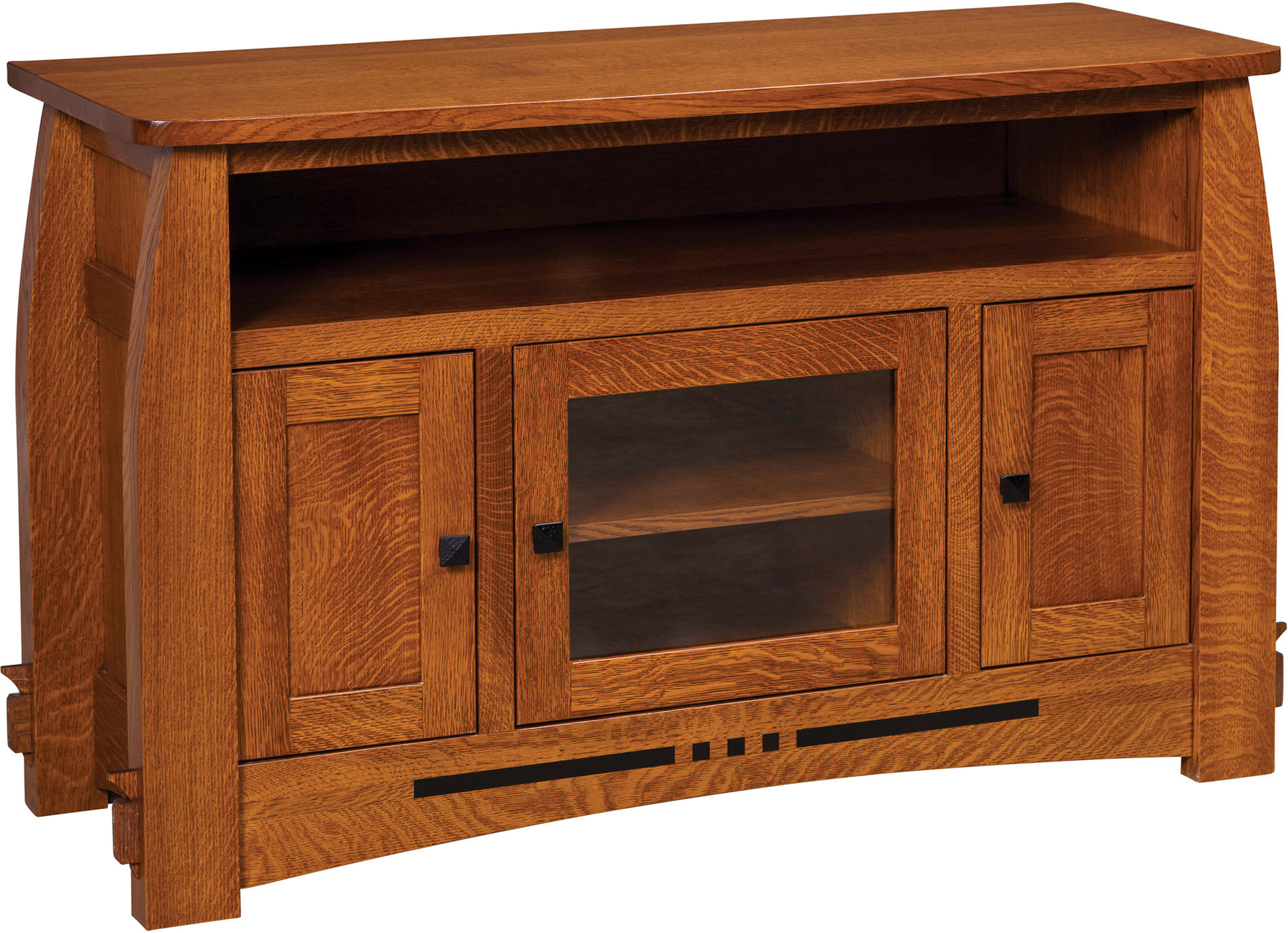 Special touches on the Colebrook TV Cabinet give it a unique style that really stands out, yet still goes well with existing furnishings. A bowed top is one feature that really distinguishes the Colebrook Collection. The stand also has mortise and tenon accents as well as ebony inlays. This TV cabinet certainly does not lack character.
