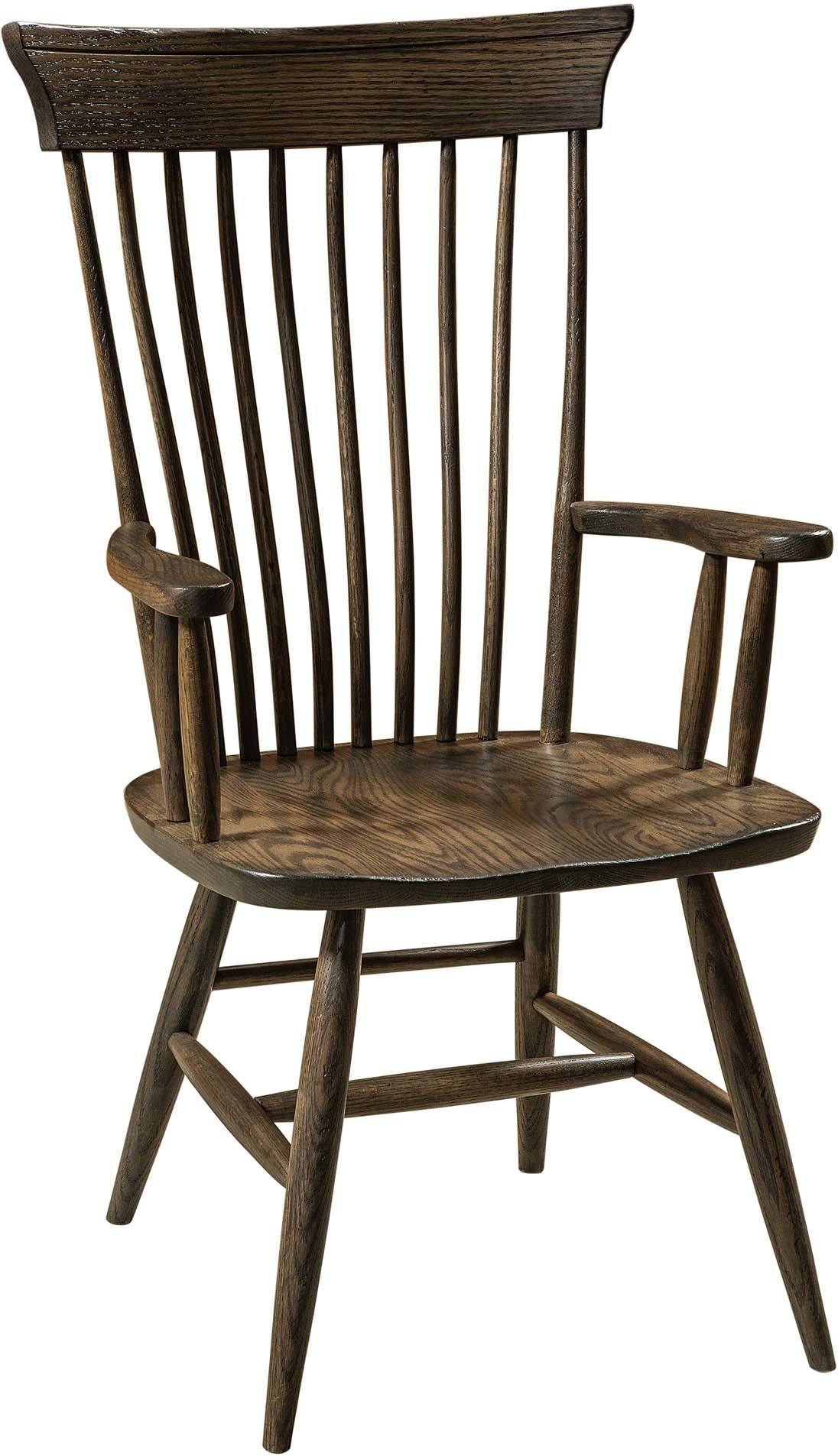 The classic design of the Concord Chair makes it a great addition to your dining space. Marked by rounded slats on the back and a wide carved seat. It’s featured here in Oak with SP-159 Weathered Grey Wood-10 Sheen.