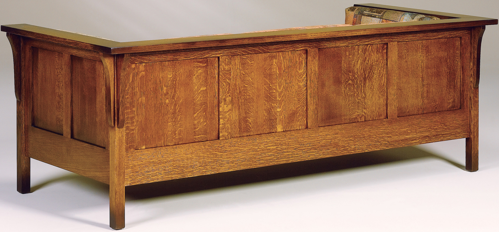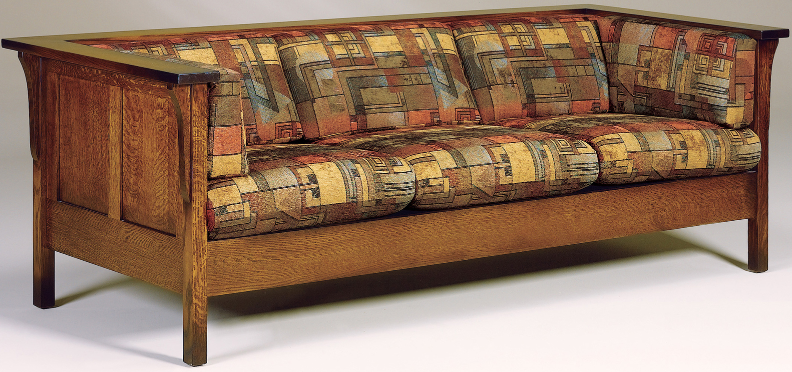 Amish artisans constructed the Cubic Panel Sofa from Quarter Sawn White Oak. Therefore creating a comfortable and durable sofa for your home. Designed with rectangle panels and corbels on each corner, this sofa will look great in your Living Room. With custom options available, you can create the perfect sofa for your home.