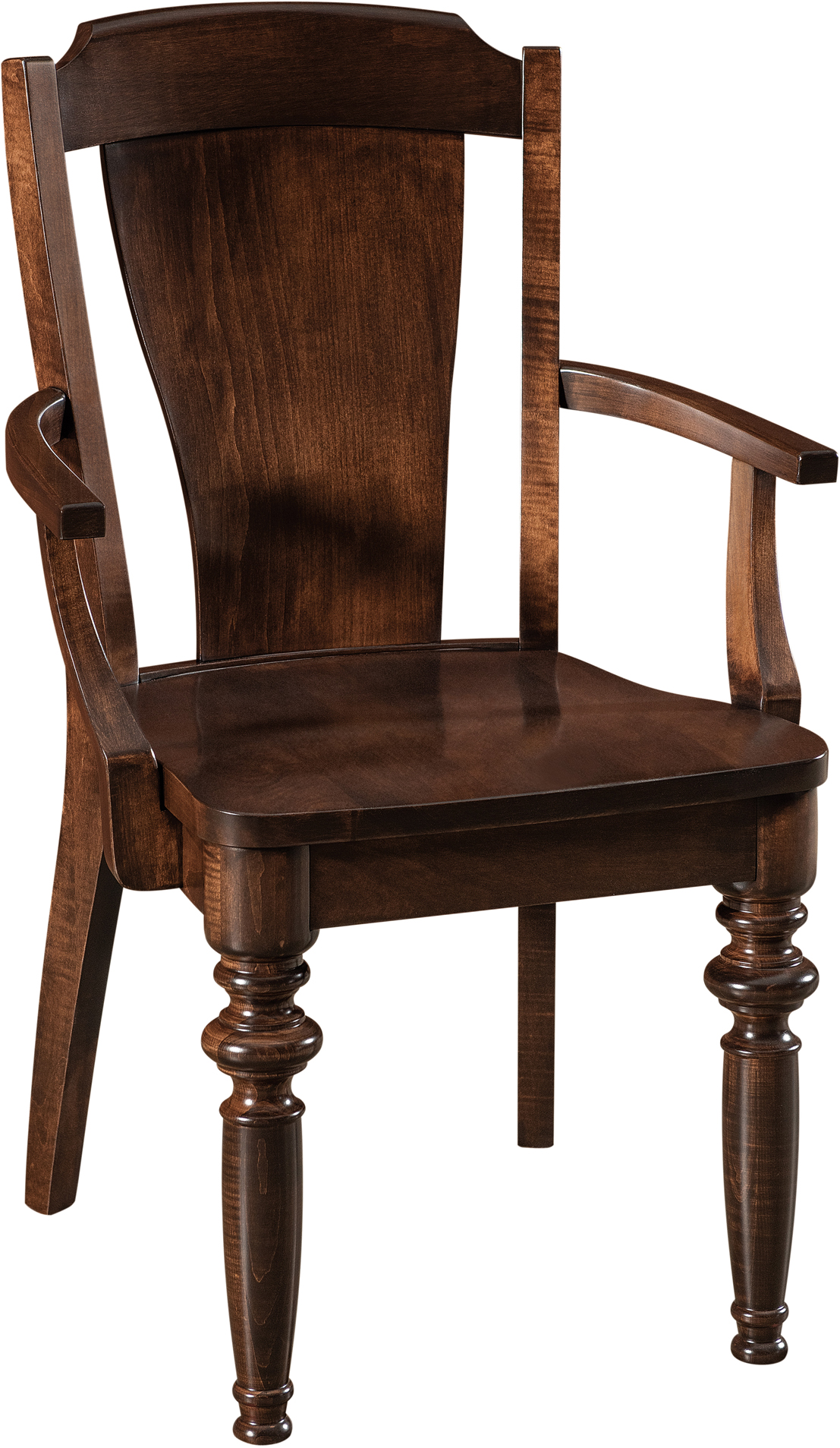 With its wide, curved panel back and elegant turned post front legs, the Cumberland Chair makes an impressive statement. Also, we offer the chair with a wood, leather or fabric seat. So we’ll tailor-make the chair to fulfill your desires for looks and comfort. What’s more, you can choose side or arm chairs. Amish cabinetmakers build each chair. In addition, they use top hardwoods. Like oak, cherry and brown maple (shown with Coffee Stain). So the Cumberland Chair is incredibly sturdy. Durable. Also heirloom-quality! To order, click the “Customize this product” button below. Then, complete the “Customize Product” fields. Also click the “Get your customized quote” button. Or call 855-768-3270.