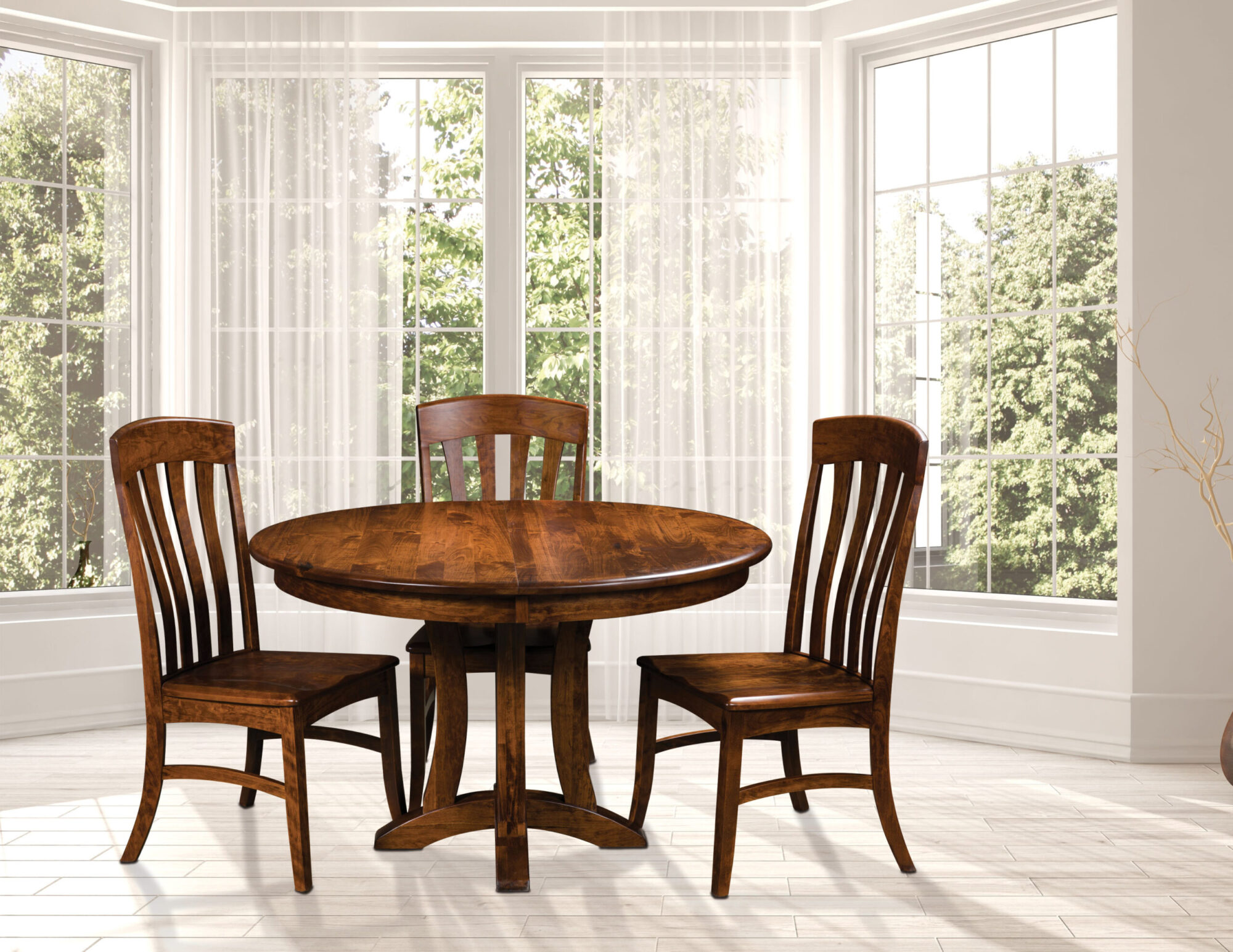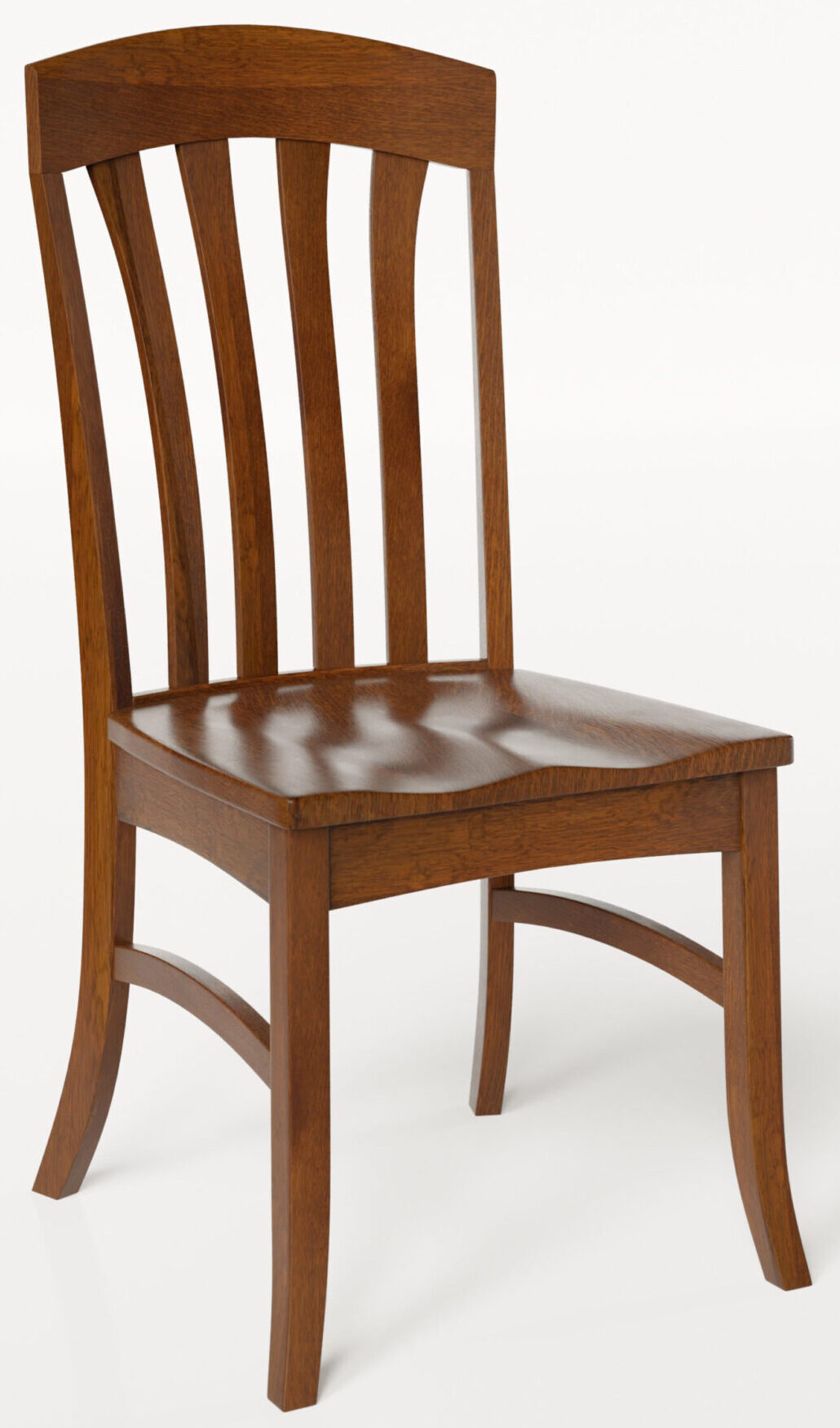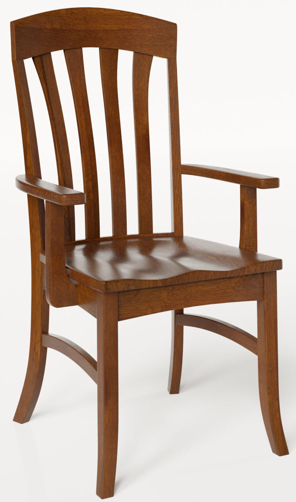 Solid hardwood is carved to create graceful arches and eye-catching slats in the Dawn Chair. You couldn’t ask for a finer chair for your upscale dining room. The comfortable saddle scoop seat with Mission edge is standard. For even more comfort, simply request an upholstered seat finished in fabric or leather. Also, you can order your set of chairs with any combination of side chairs and armchairs. Our Amish cabinetmakers build the piece. And, they use top hardwoods like quarter-sawn white oak (shown with Light Asbury Stain). No wonder the chair is so great-looking, sturdy and heirloom-quality! Now, make it yours. Simply complete the customizing fields below. Also, make sure you include your choices for wood species, finish and more. Or call 855-768-3270.