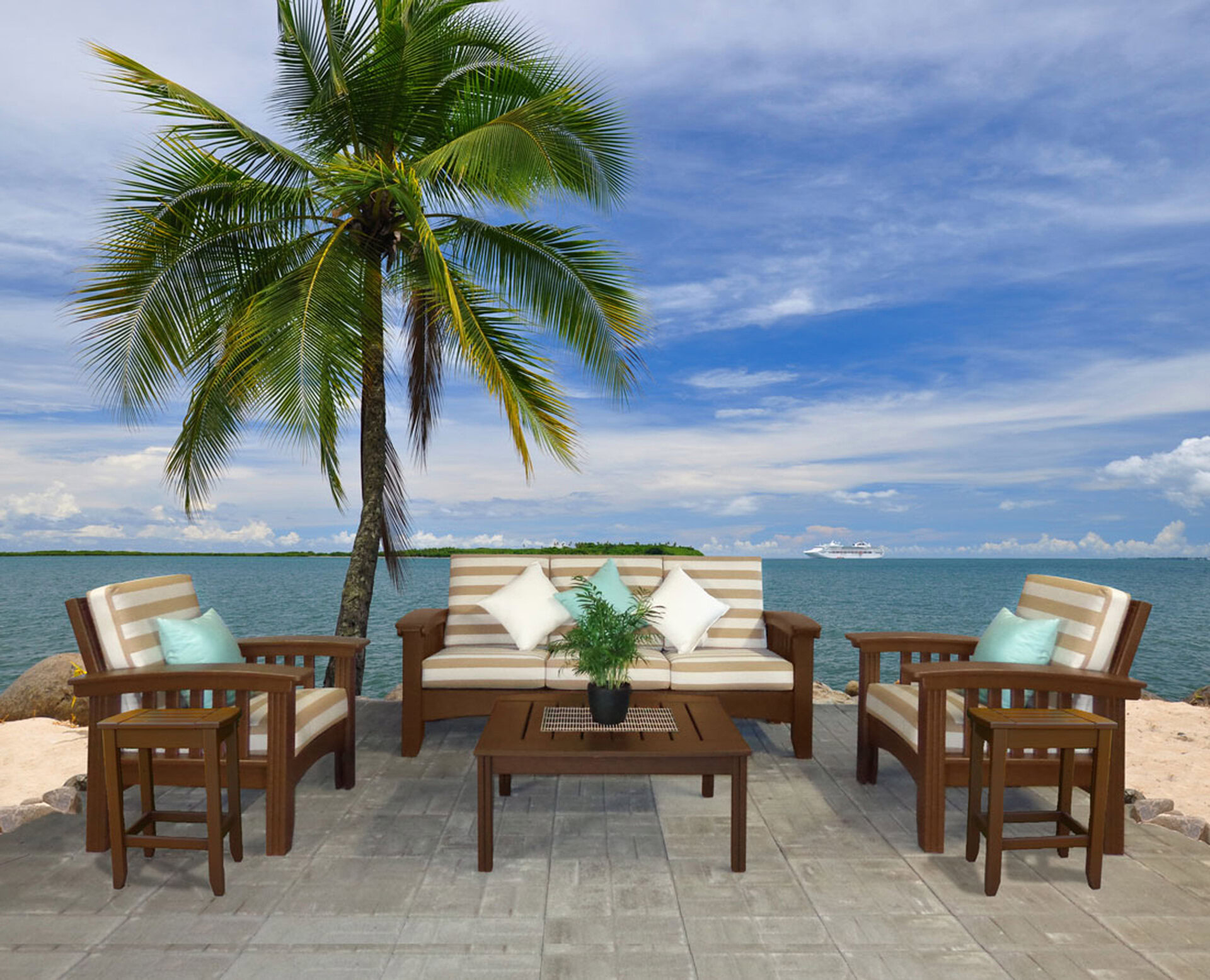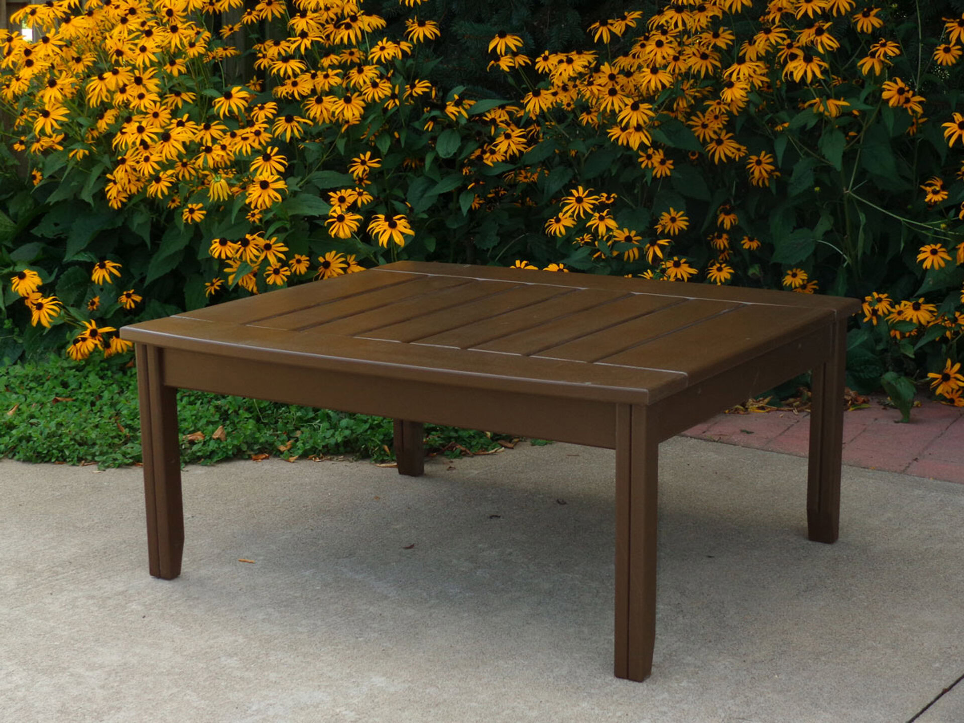 The Days End Conversation Table is an outdoor coffee table. Choose from cypress wood or poly lumber. It is the perfect place for your pitchers of lemonade and tea on warm, sunny days. So, have your neighbors or friends over, sit back and and prop your feet up on this table. You are sure to use this table more than any other!