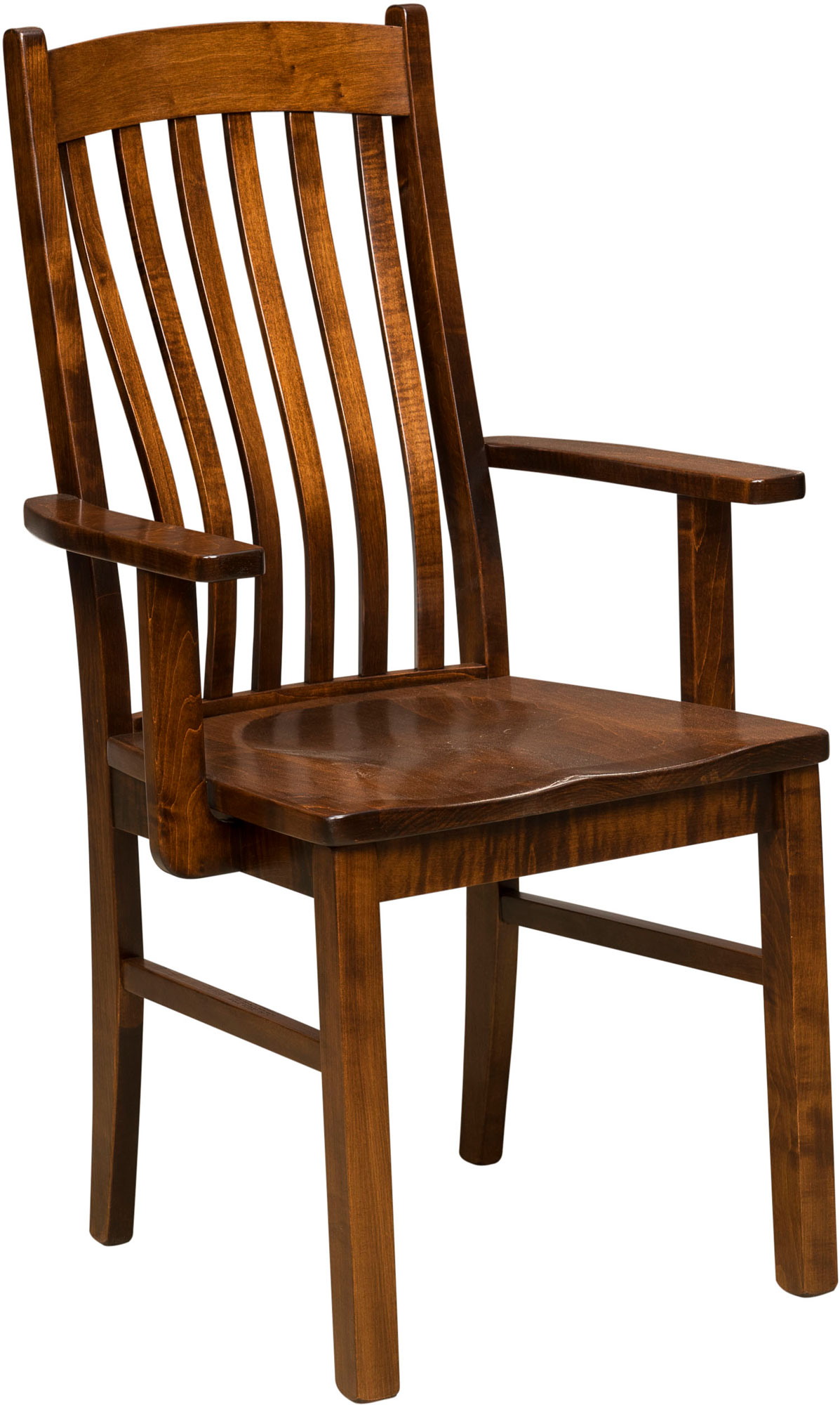 From the arched top of the backrest to the tapered feet, the Delilah Chair resonates with elegance and strength. The curved slats provide great back support. While the saddle scoop seat with a Mission edge enhances comfort. For even more comfort, simply request an upholstered seat finished in fabric or leather. Also, you can order your set of chairs with any combination of side chairs and armchairs. Our Amish cabinetmakers build the piece. And, they use top hardwoods like oak, cherry and brown maple (shown with Asbury Brown Stain.) No wonder the chair is so great-looking, sturdy and heirloom-quality! Now, make it yours. Simply complete the customizing fields below. Also, make sure you include your choices for wood species, finish and more. Or call 855-768-3270.
