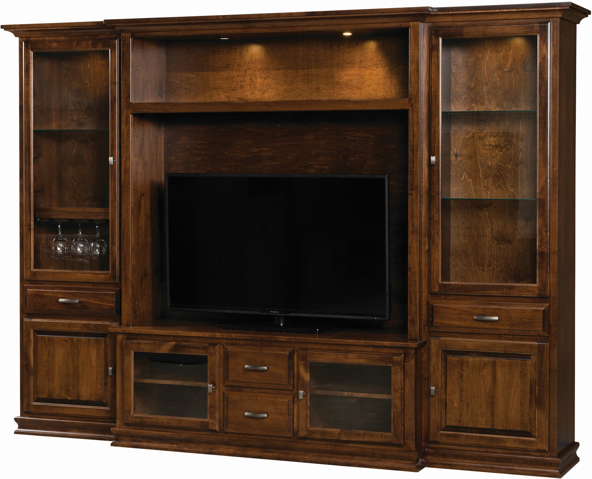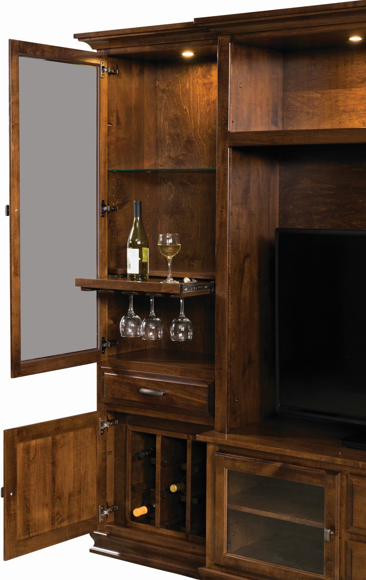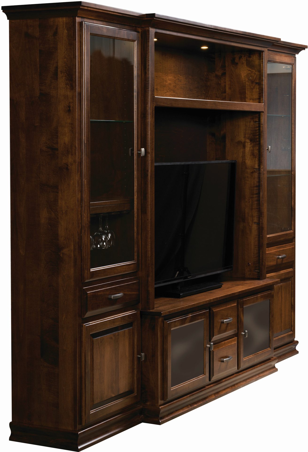 The Denali Entertainment Center is the perfect choice for your home living or entertaining area. This piece offers all the media storage you could need and includes beautiful wine and stemware storage, as well. Our expert craftsmen take special care to create a piece from the finest materials, so it will stand the test of time.