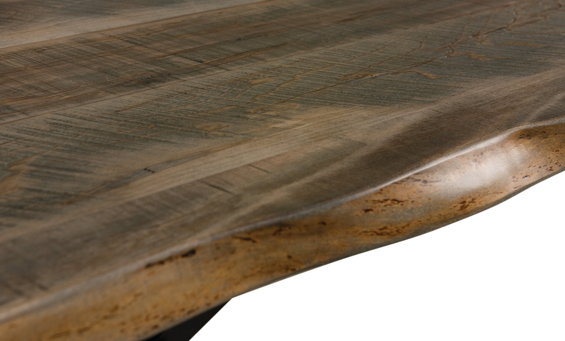 A rugged farmhouse look with a chic industrial vibe aptly describes the El Dorado Trestle Table. We build the hefty 1 ¾-inch tabletop from rough-sawn wormy maple. (It’s shown with FC-47823 Bel Air 10 sheen finish.) Also, the table comes with a live edge on each side. So each table is unique. Then, we add the black powder-coated metal base to complete the trendy look. We offer the El Dorado Trestle Table in widths of 42 and 48 inches. Plus lengths of 84 and 96 inches. Wish to add seating? We have a matching bench. Plus a wide selection of chairs to choose from. Our Amish artisans build each table. No wonder it’s so sturdy. Also heirloom-quality! Now, make it yours. Simply complete the customizing fields below. Also, make sure you include your choices for wood specie, finish and more. Or call 855-768-3270.